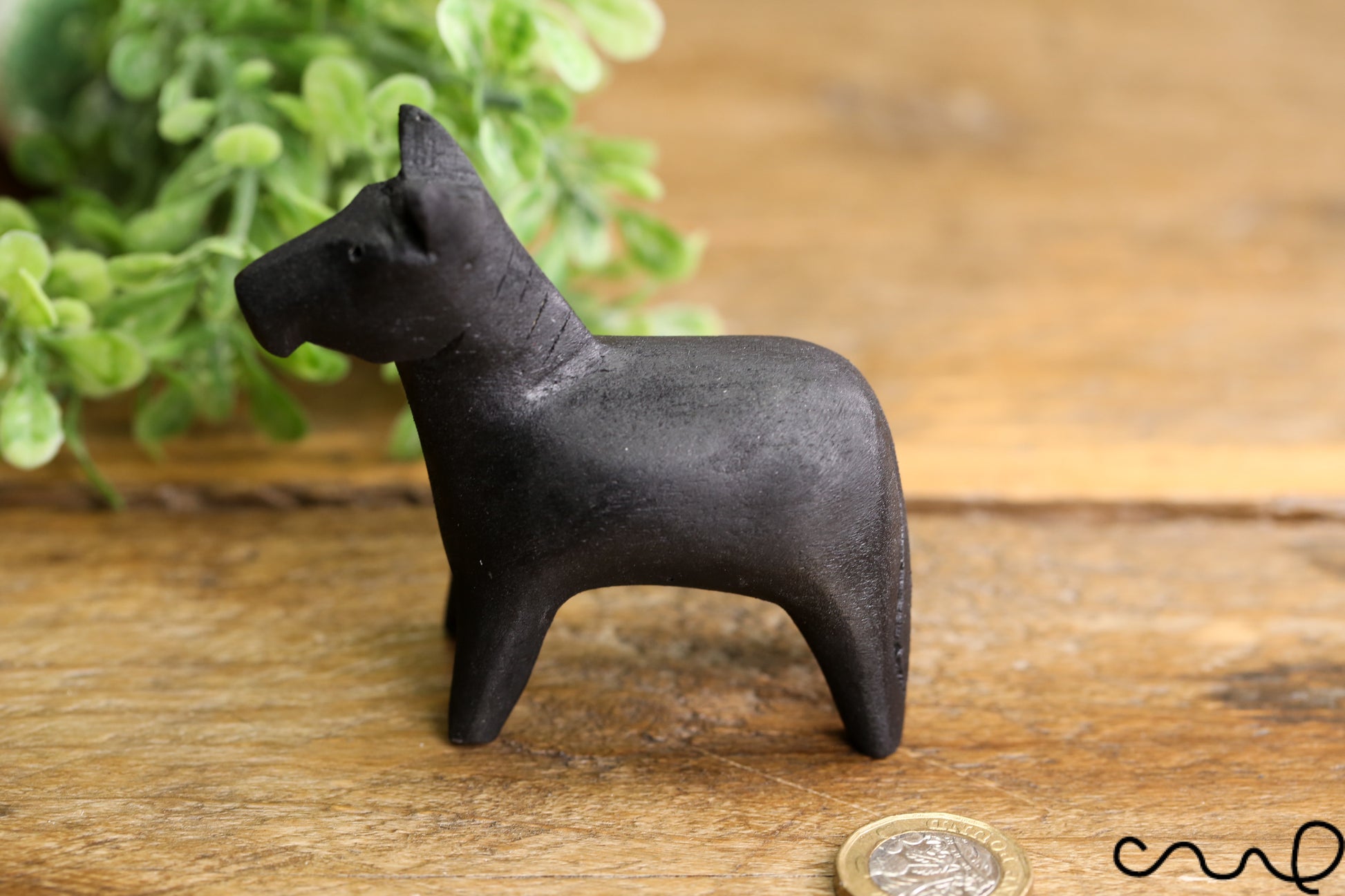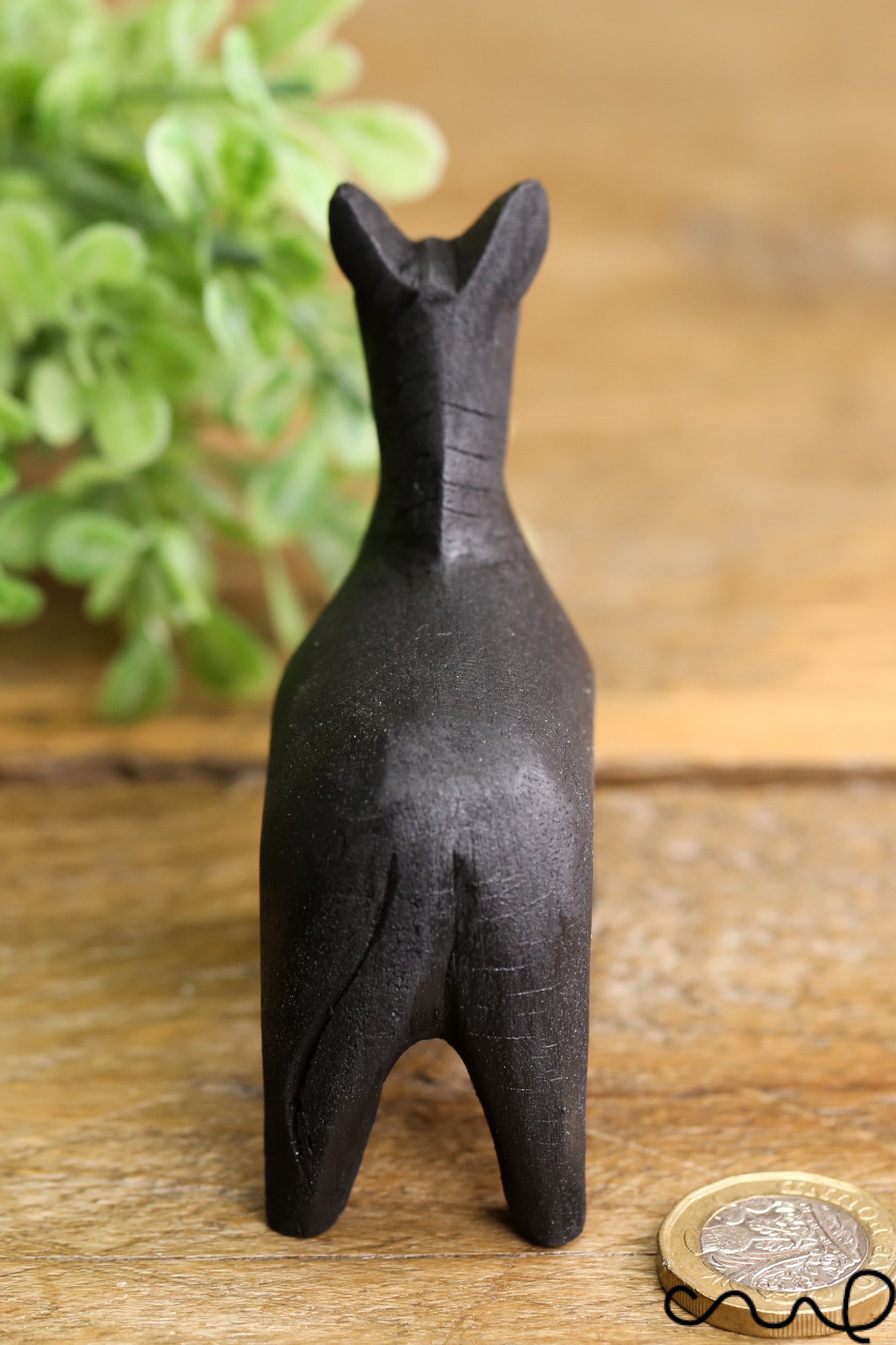 Add a touch of handcrafted charm to your space with this beautifully hand-carved and hand-painted black wooden horse.