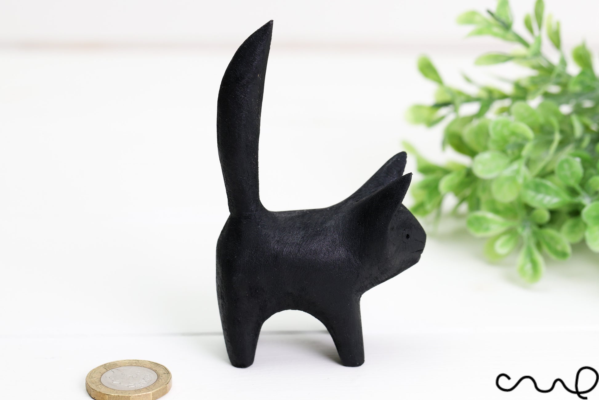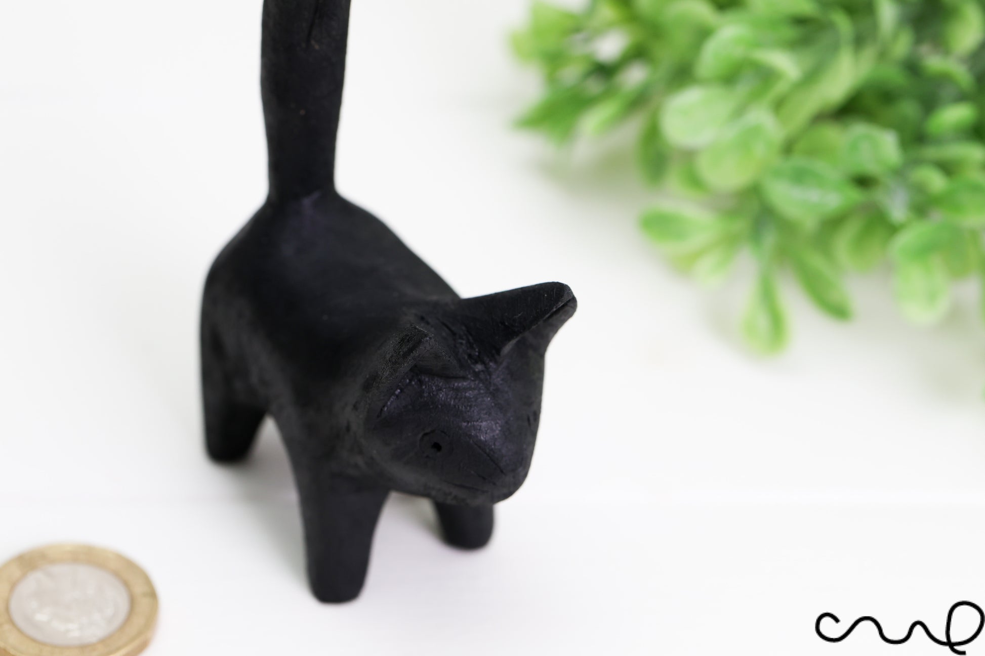 Bring a touch of handcrafted charm to your space with this beautifully hand-carved wooden cat, finished in sleek black. Each piece is one-of-a-kind, carved and painted by hand using natural wood.