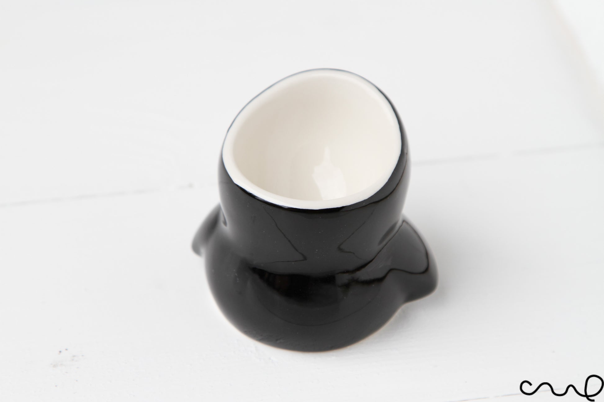 Hand Painted Ceramic Black Penguin Egg Cups Breakfast Serving Gift Easter Egg