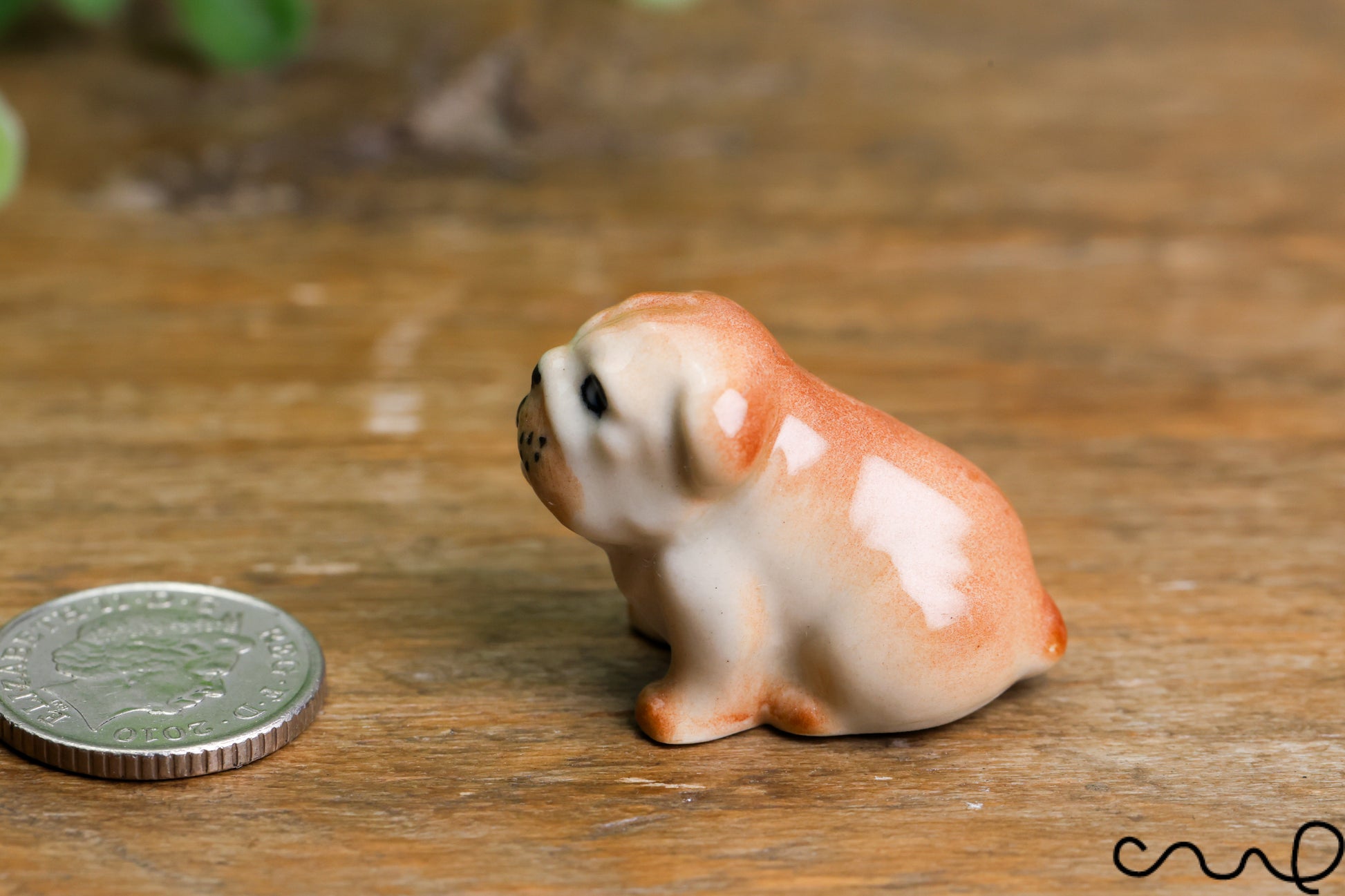 Hand-Painted Ceramic Bulldog Figurine: Miniature Dog Ornament