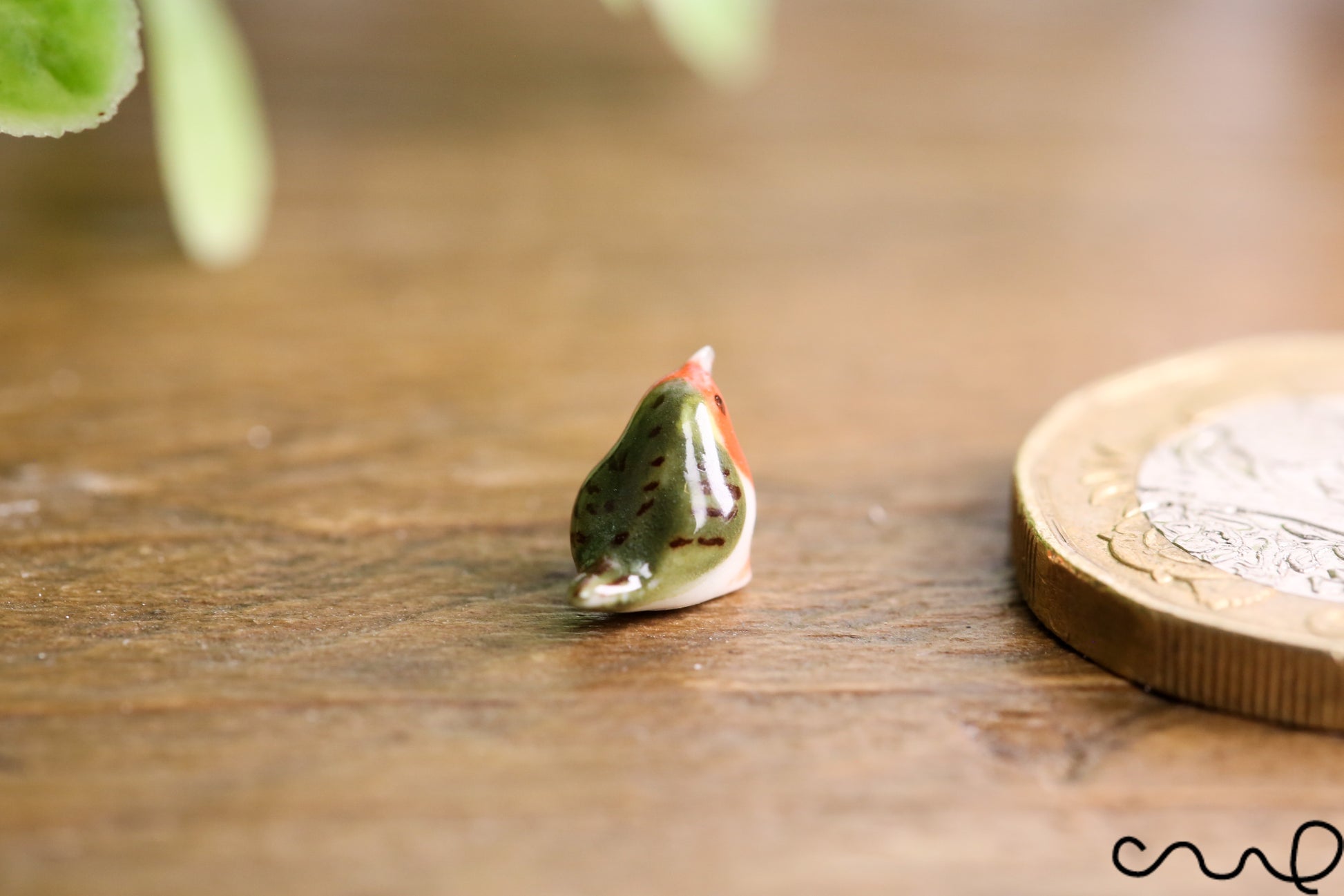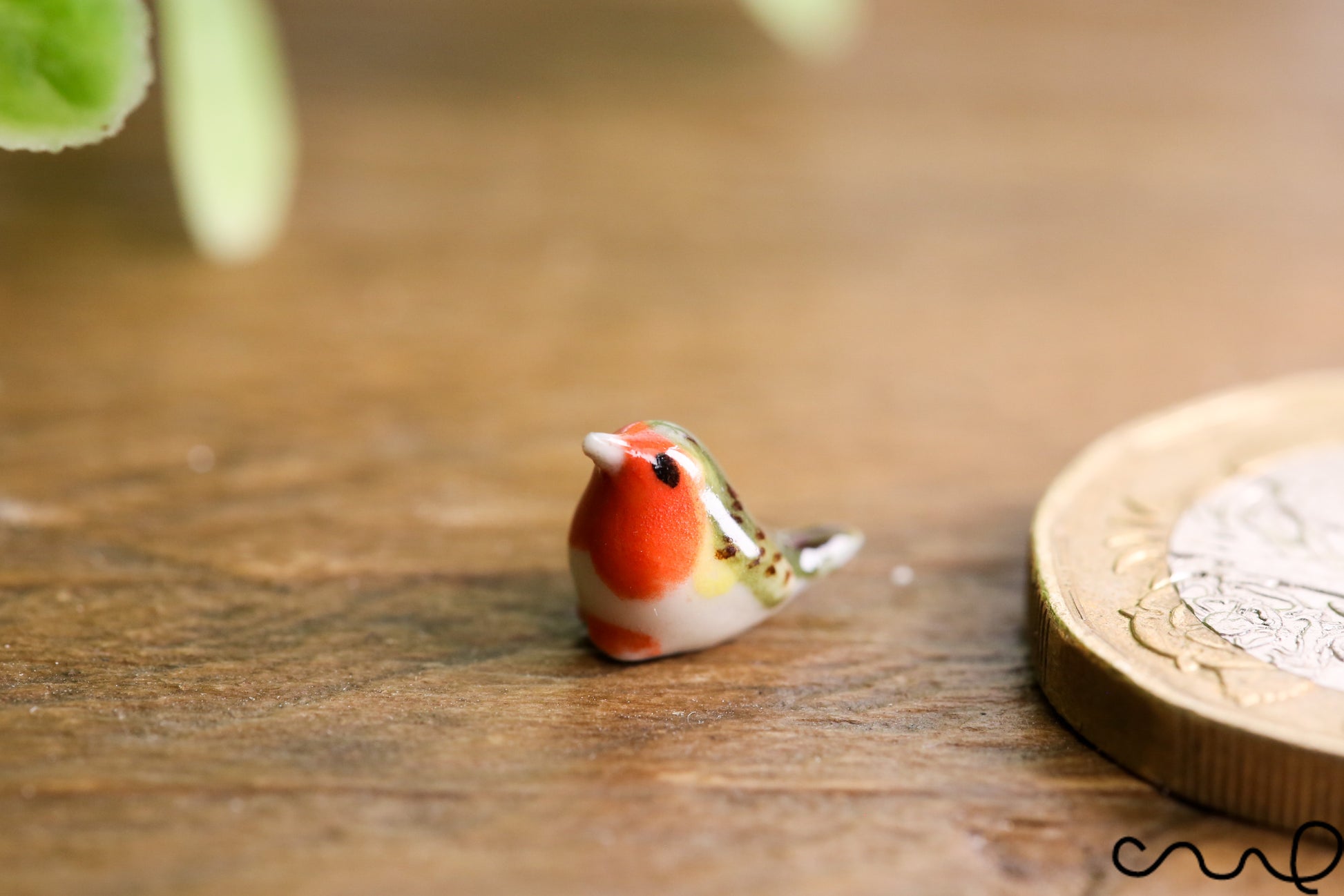 • Hand-painted miniature ceramic robin