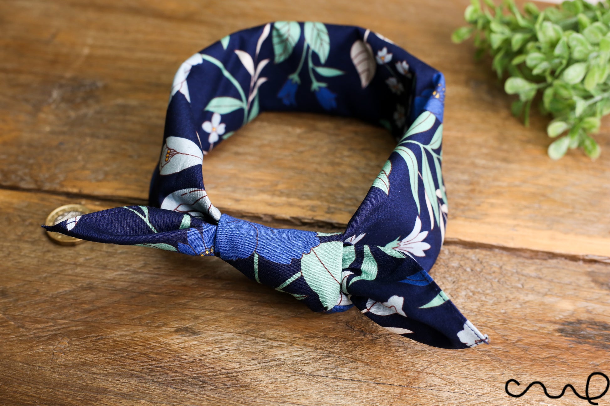 Handmade Navy Floral Cotton Bandana