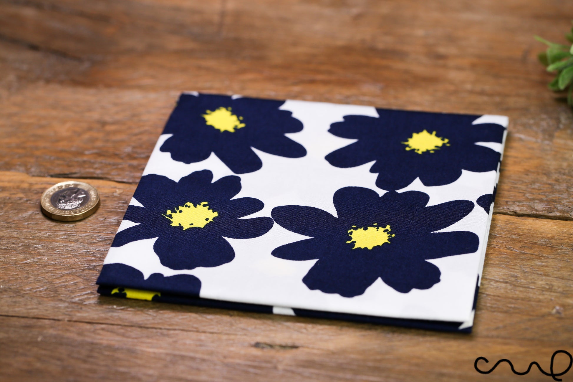 Bring a stylish touch to any outfit with this handmade navy floral bandana, crafted from 100% high-quality cotton. Lightweight, versatile, and comfortable, it’s perfect for adding flair to both casual looks and special occasions.
