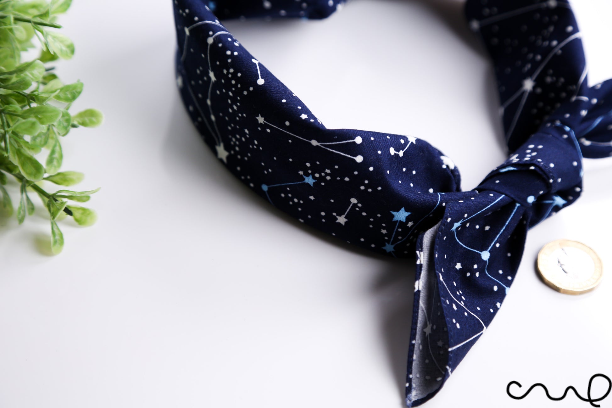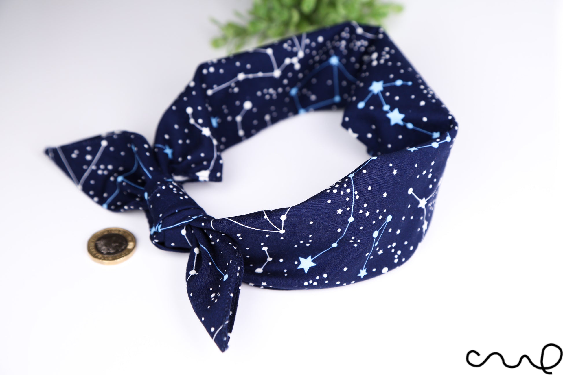 Handmade Cotton Bandana Navy Horoscope Star Party Unique Headband Neck Scarf Y