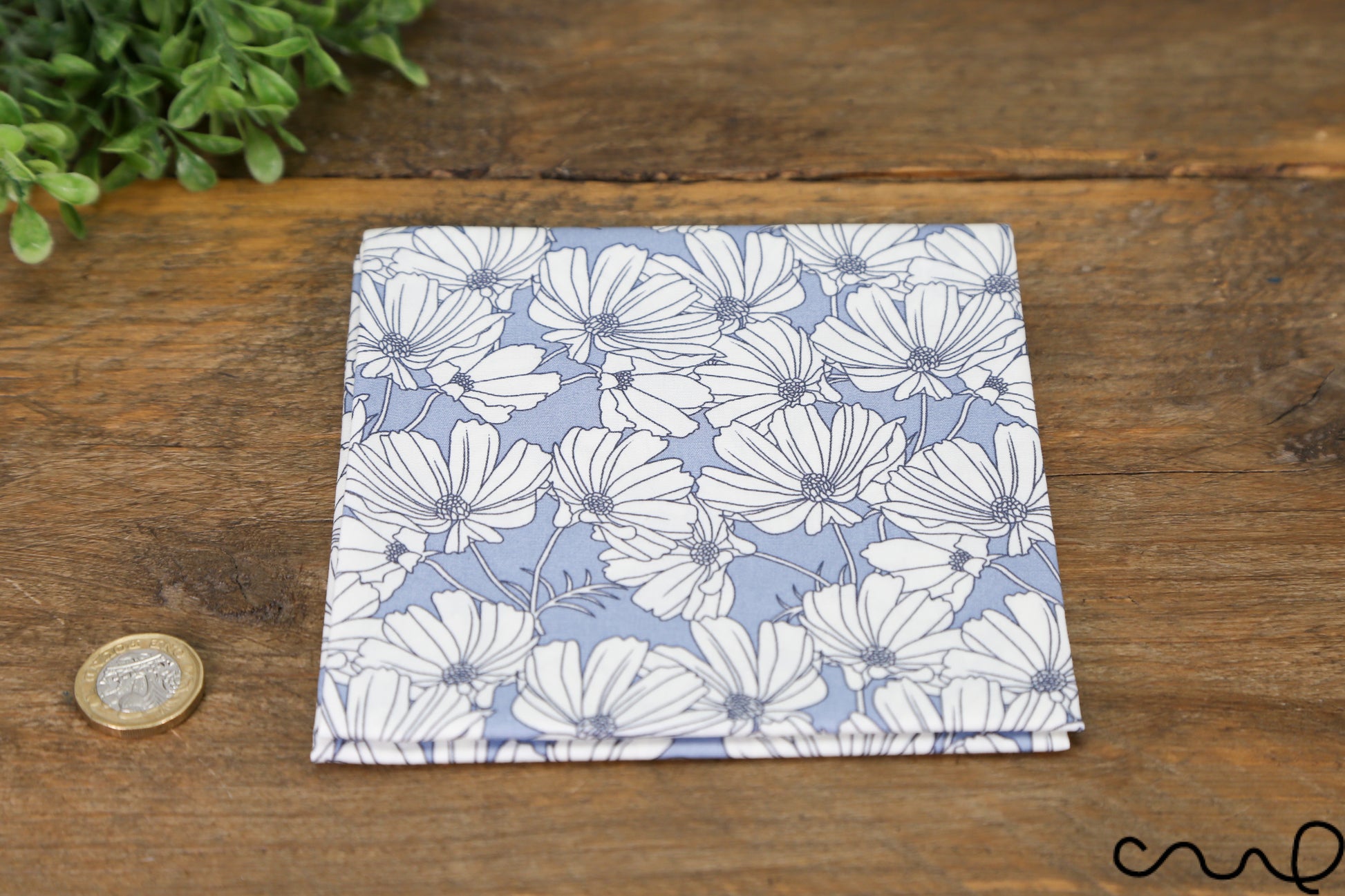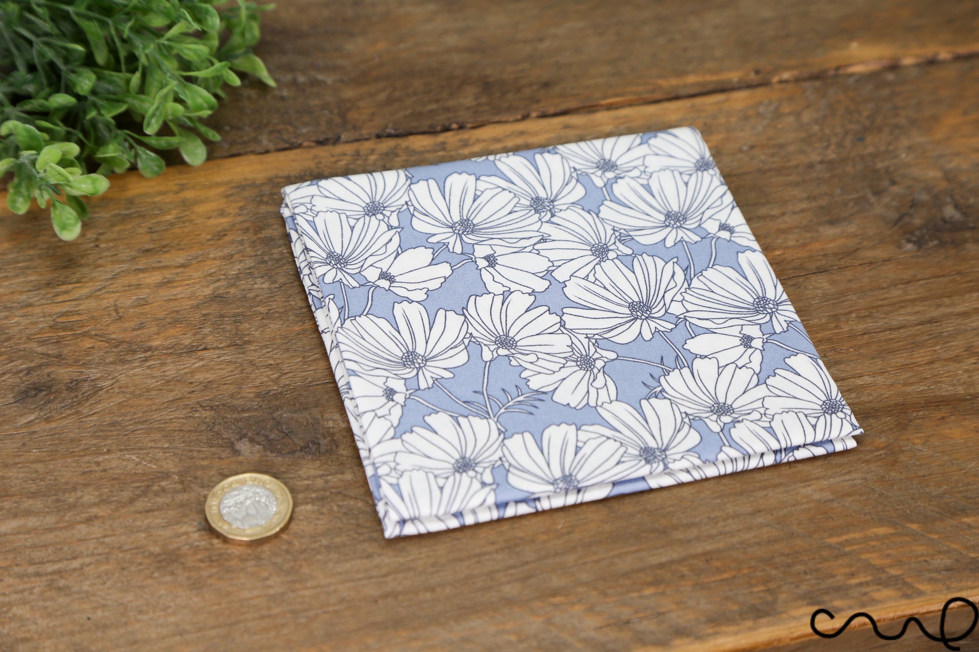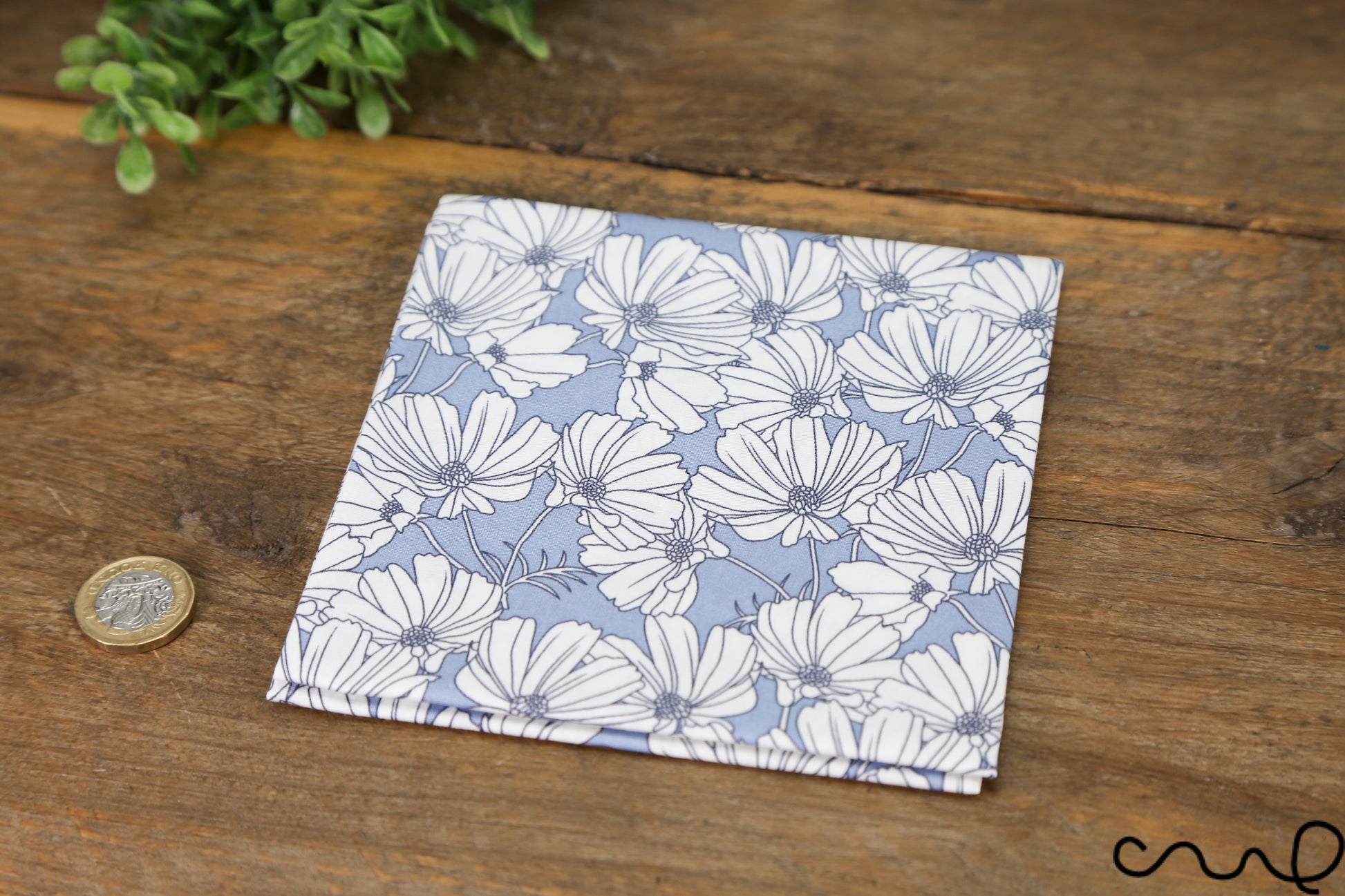 Add a vintage-inspired flair to your outfit with this handmade light blue floral bandana. Crafted from 100% high-quality cotton and featuring a charming retro-style floral pattern, it’s a stylish and versatile accessory for any occasion.
