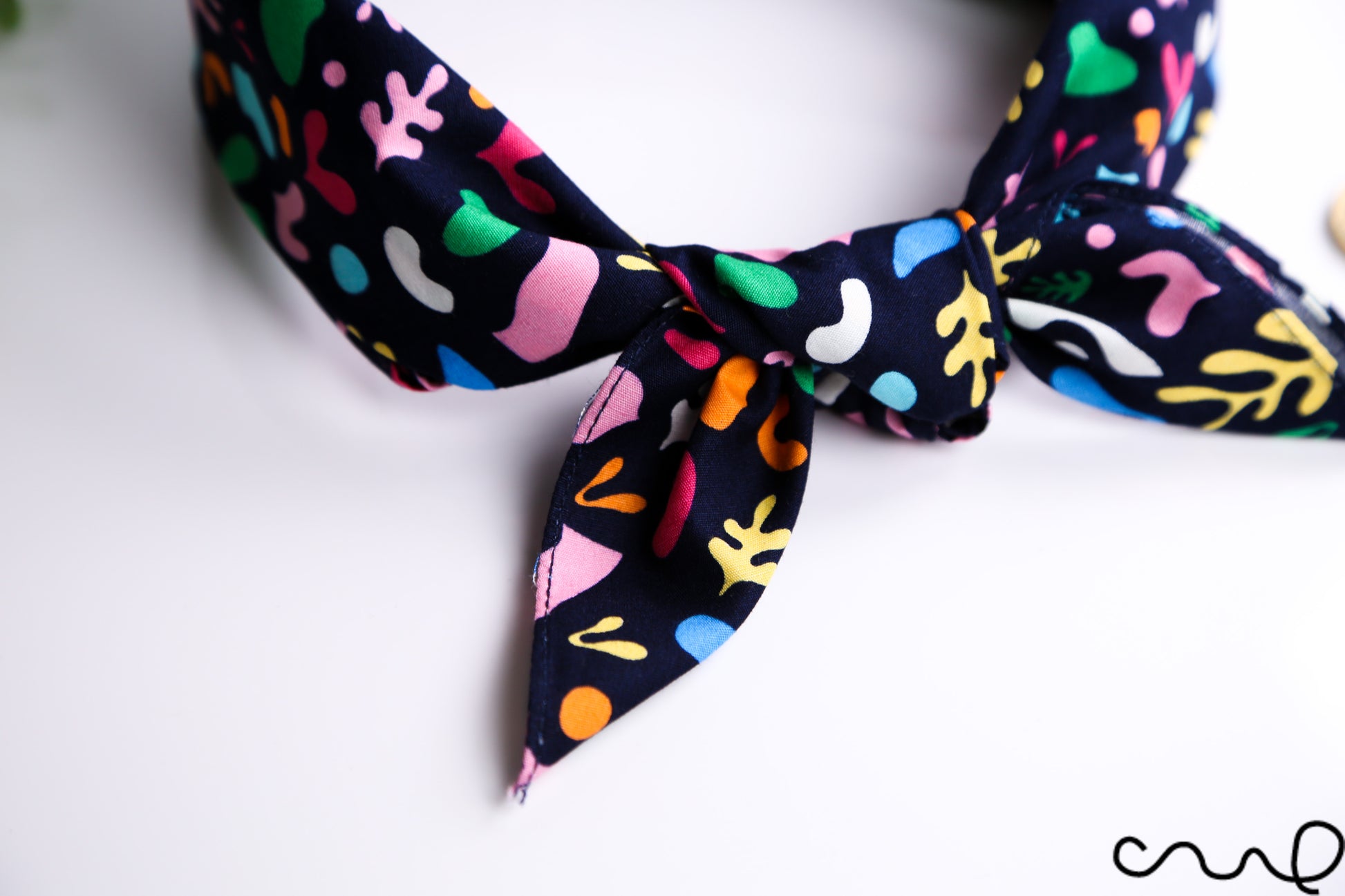 Add a touch of charm and personality to your outfit with this handmade cotton bandana in a unique navy print. Crafted from 100% high-quality cotton, it’s perfect for both casual and formal occasions.