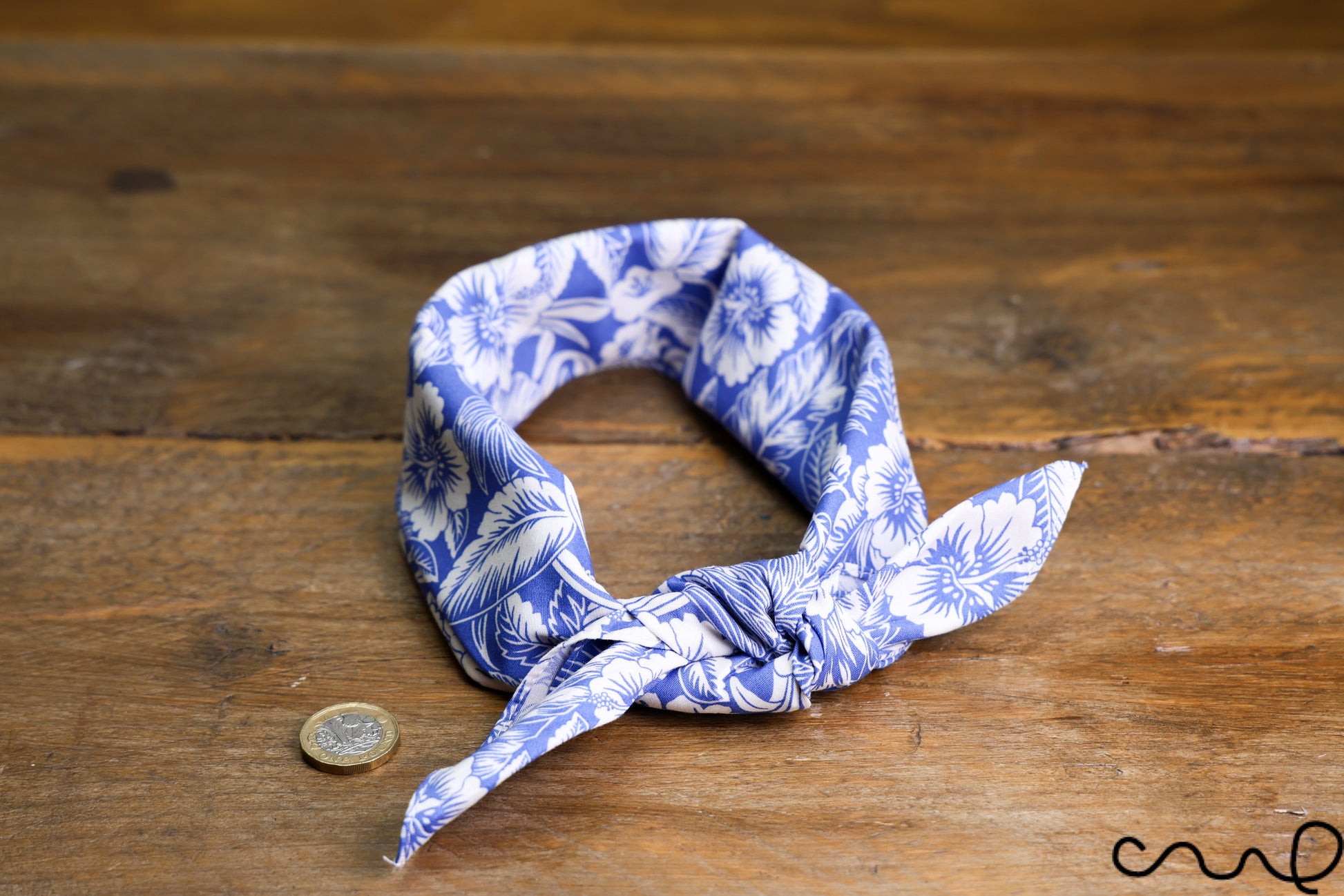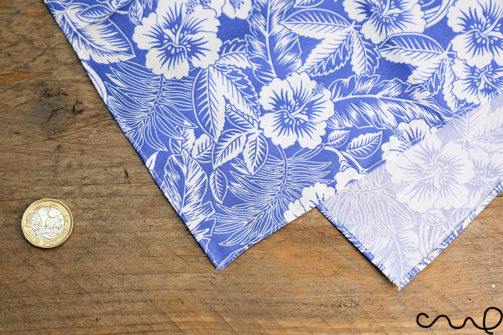 Handmade Cotton Floral Bandana – Blue & White Tropical Print
