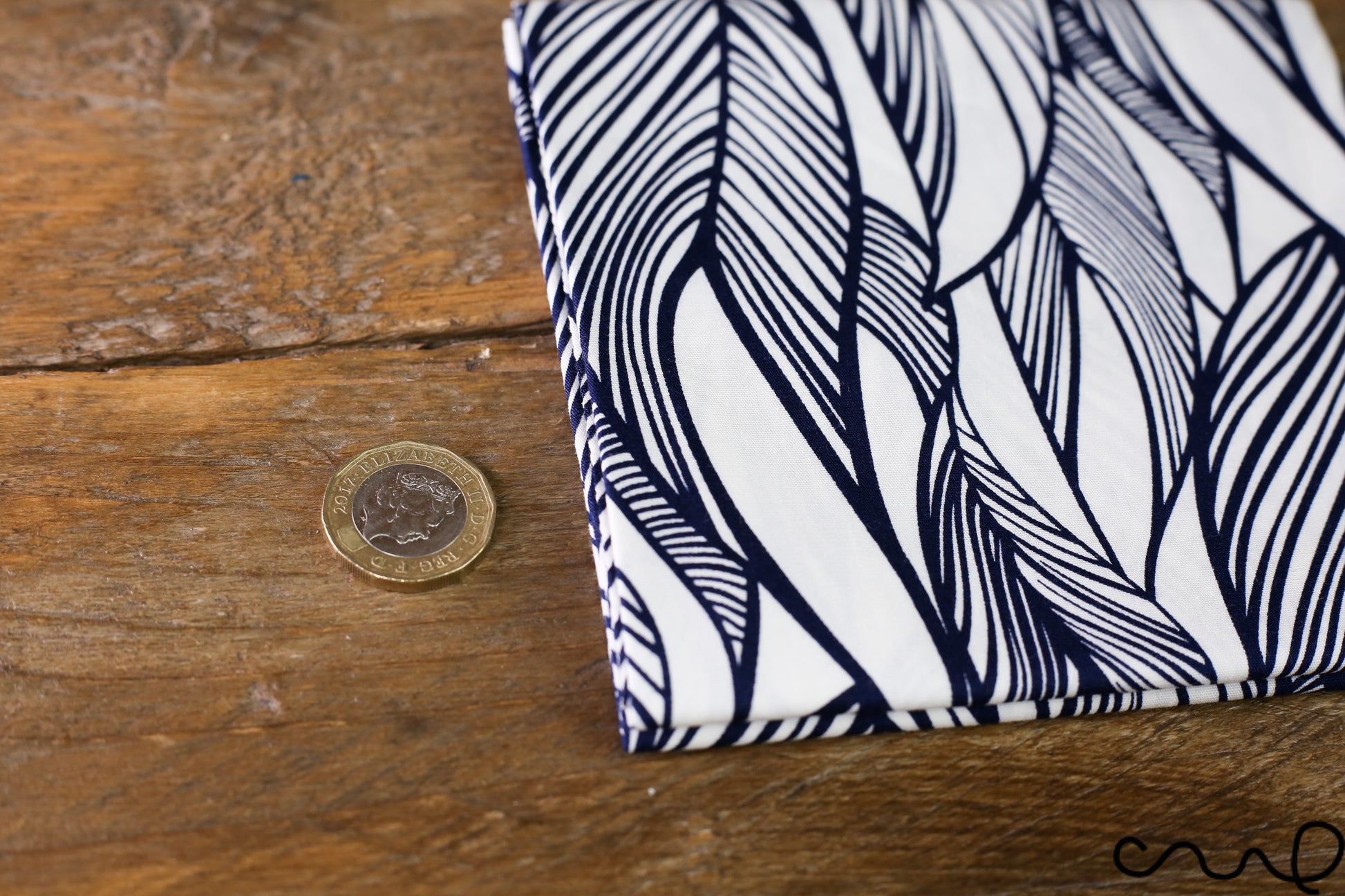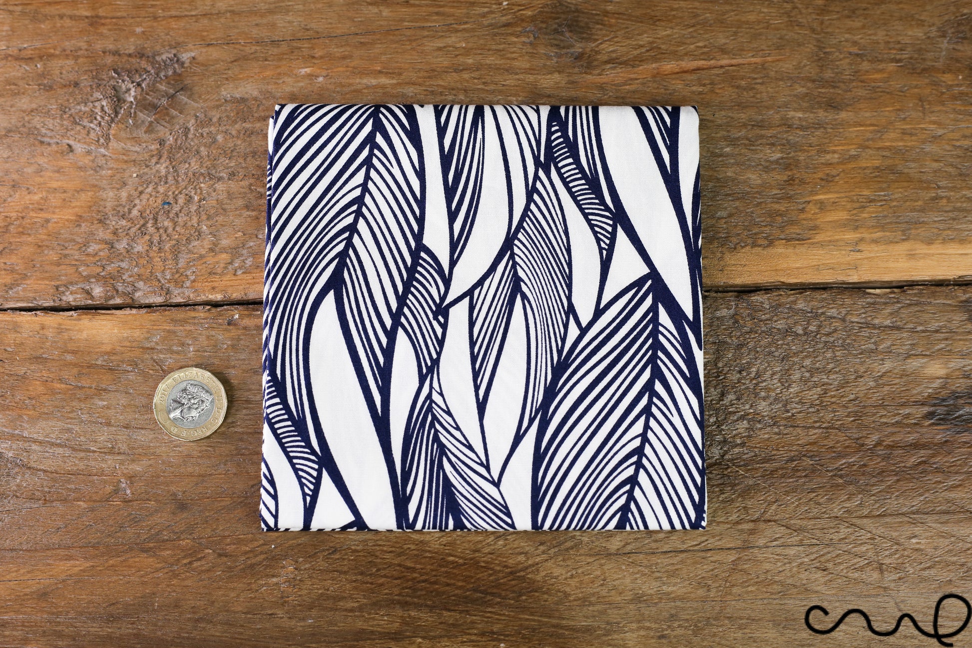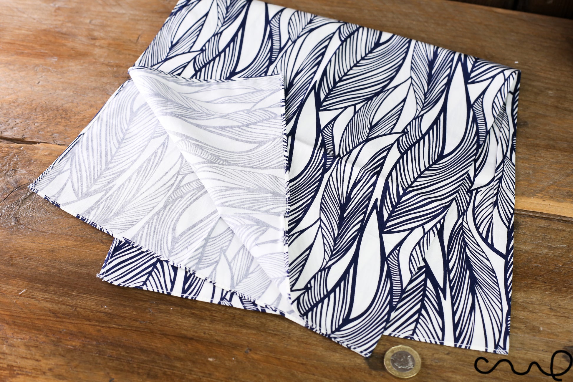 Add a stylish touch to your outfit with this handmade cotton feather bandana. Made from 100% high-quality cotton, it features a chic navy and white feather print – perfect for both casual days and special occasions.