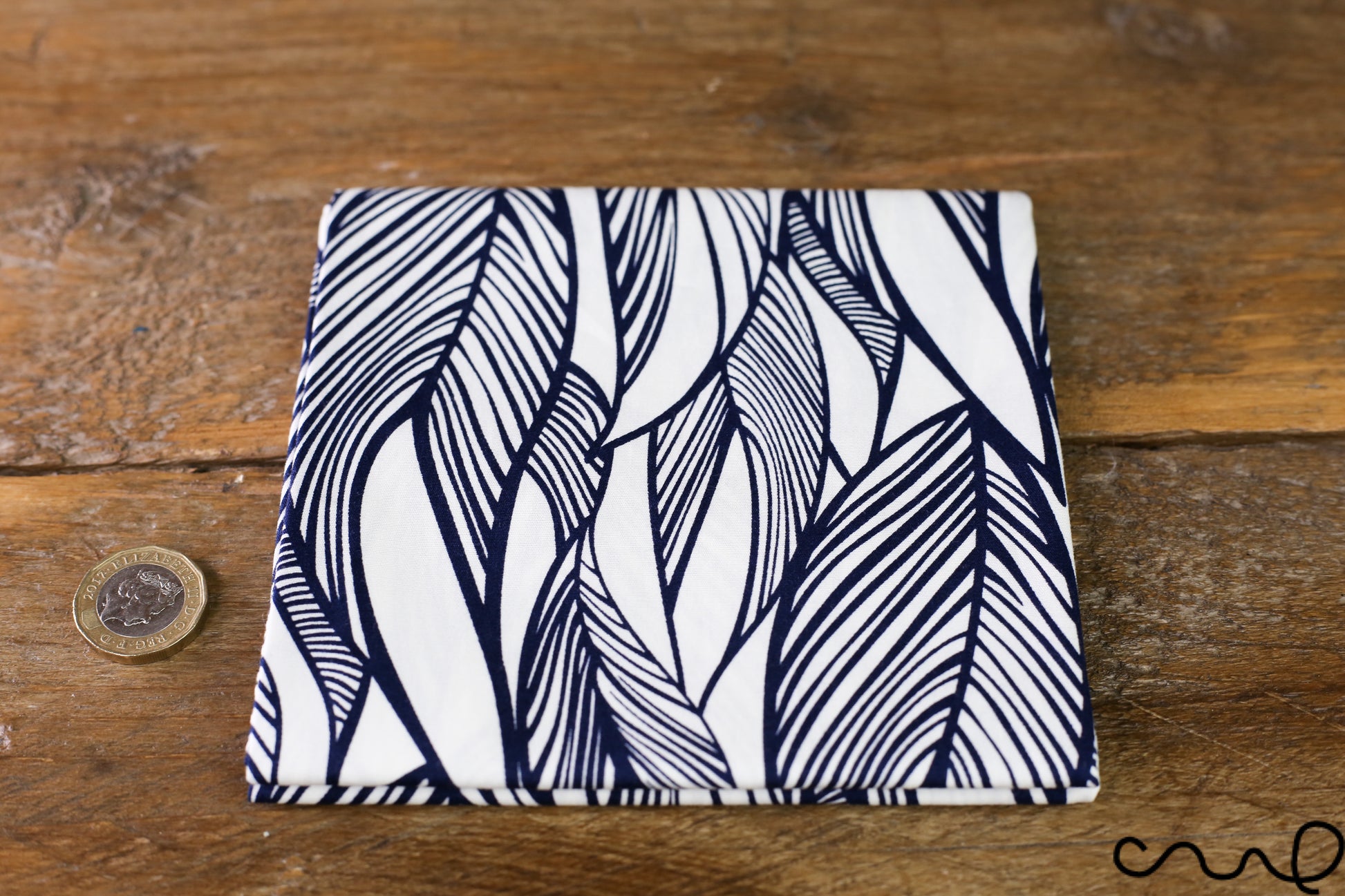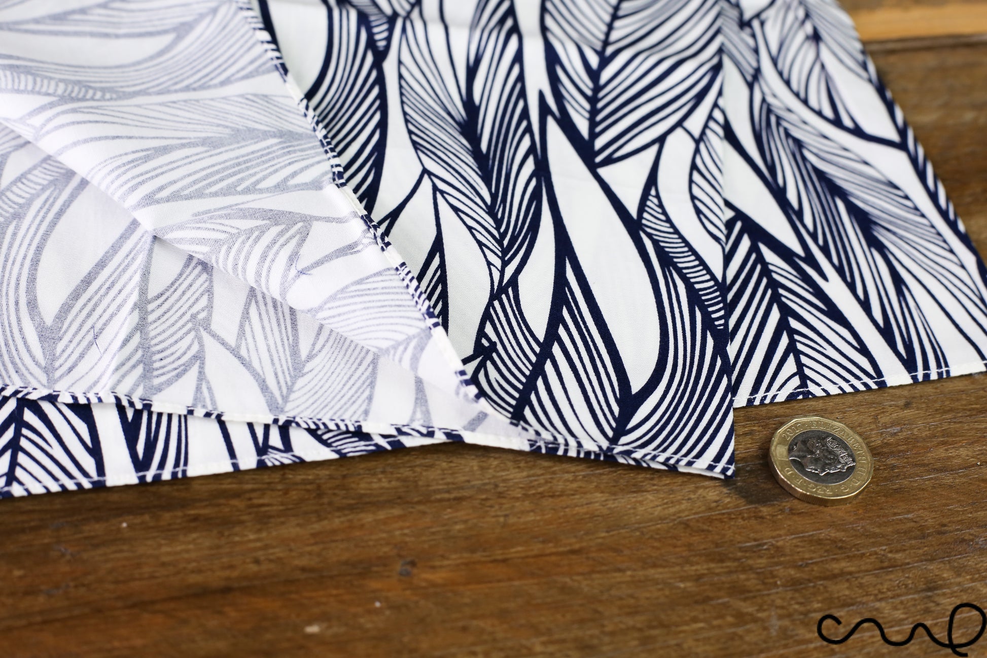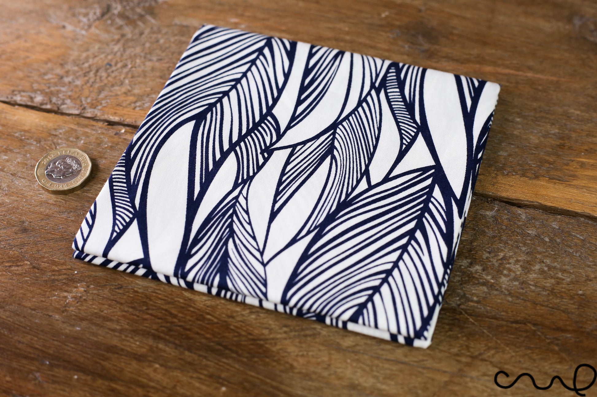 Add a stylish touch to your outfit with this handmade cotton feather bandana. Made from 100% high-quality cotton, it features a chic navy and white feather print – perfect for both casual days and special occasions.