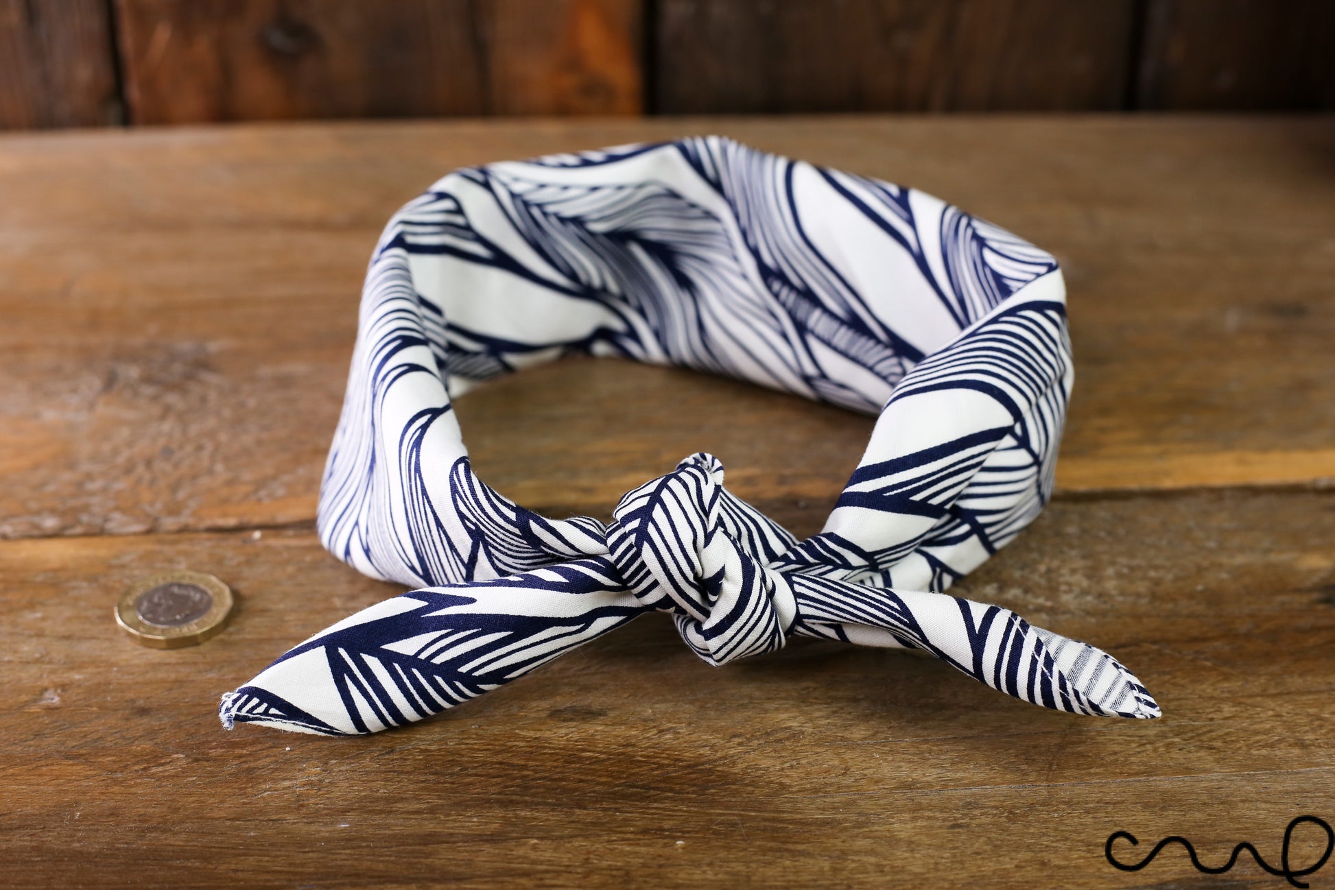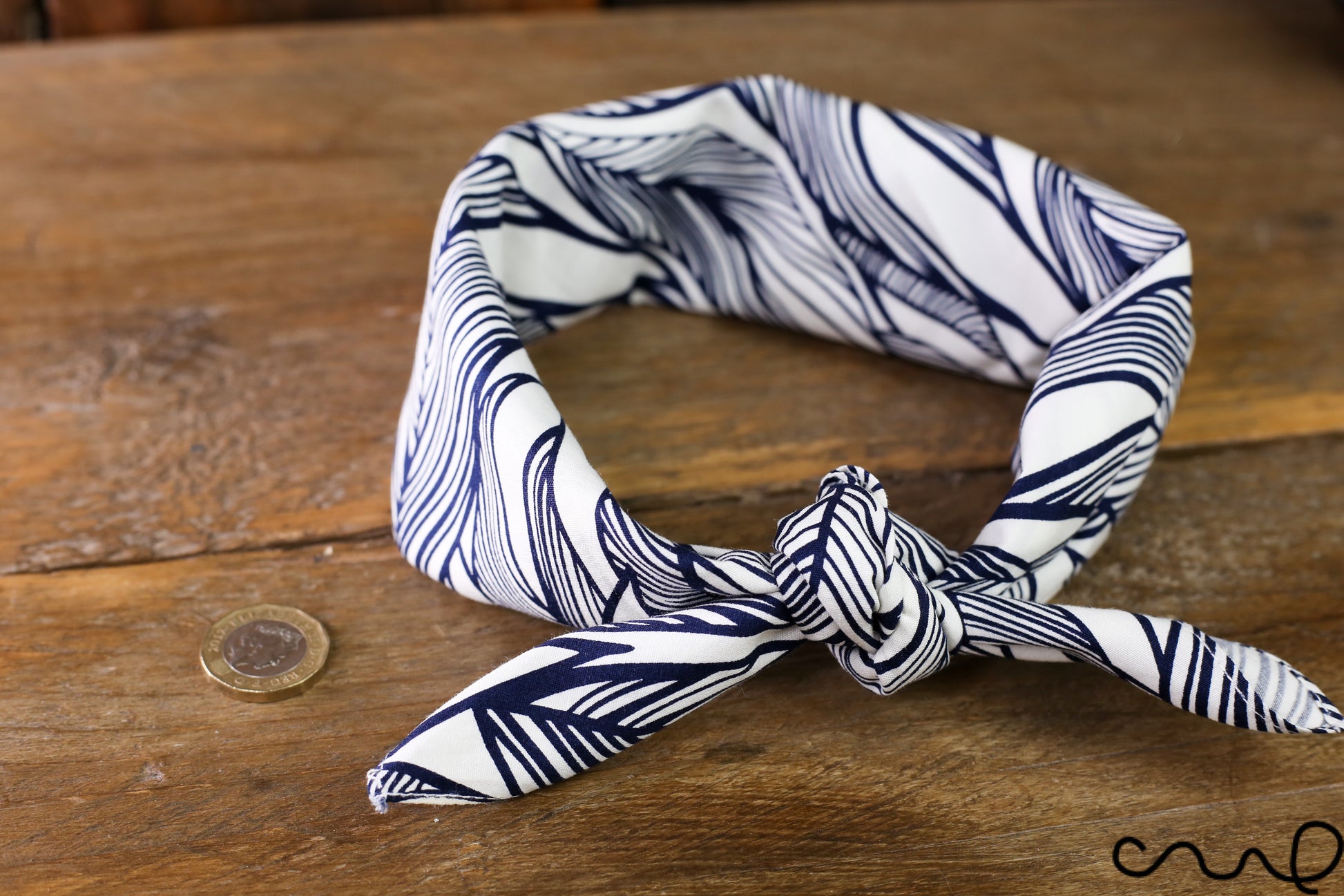 Handmade Cotton White Navy Feather Bandana Unique Headband Neck Scarf Gift X