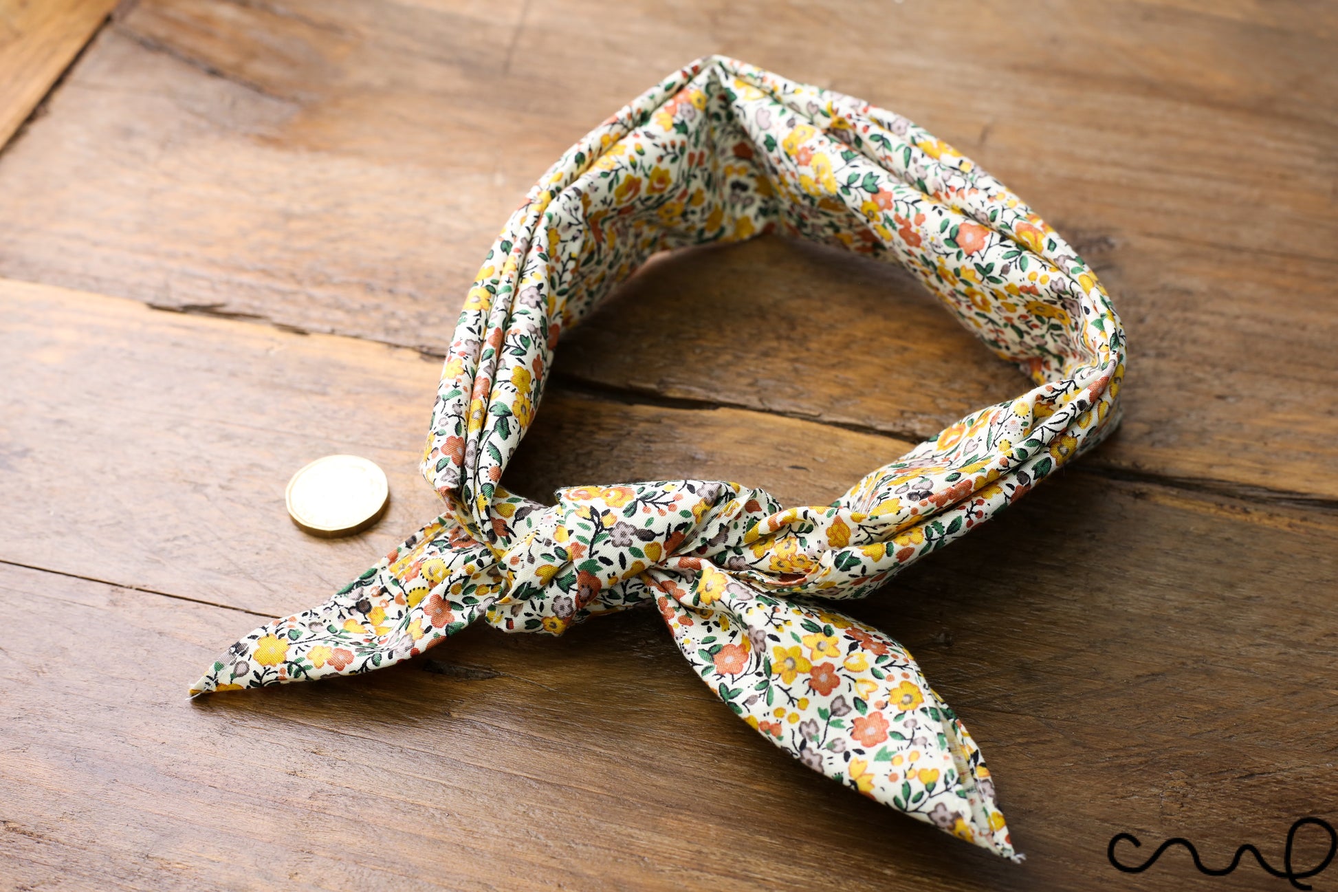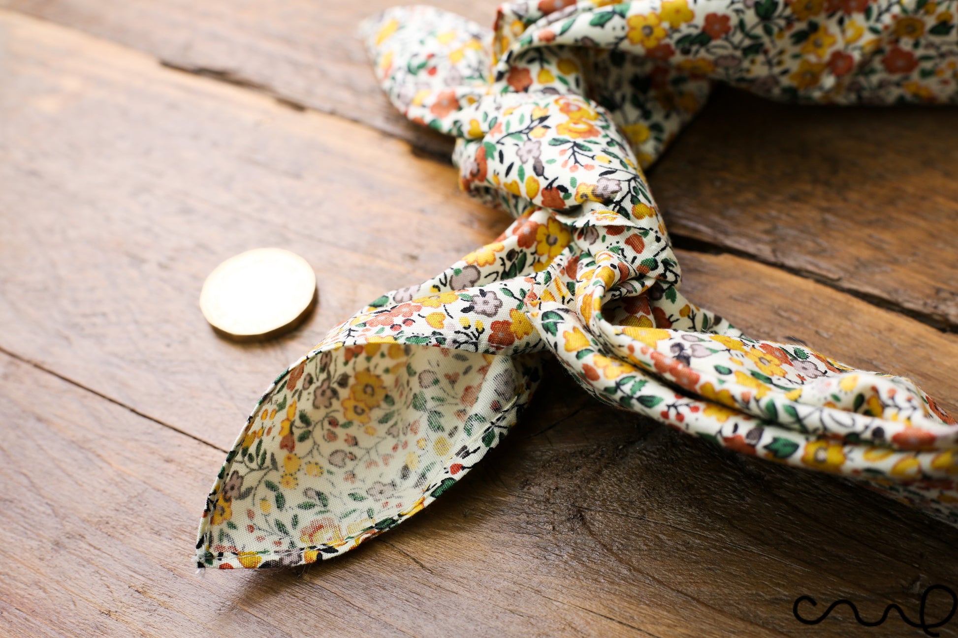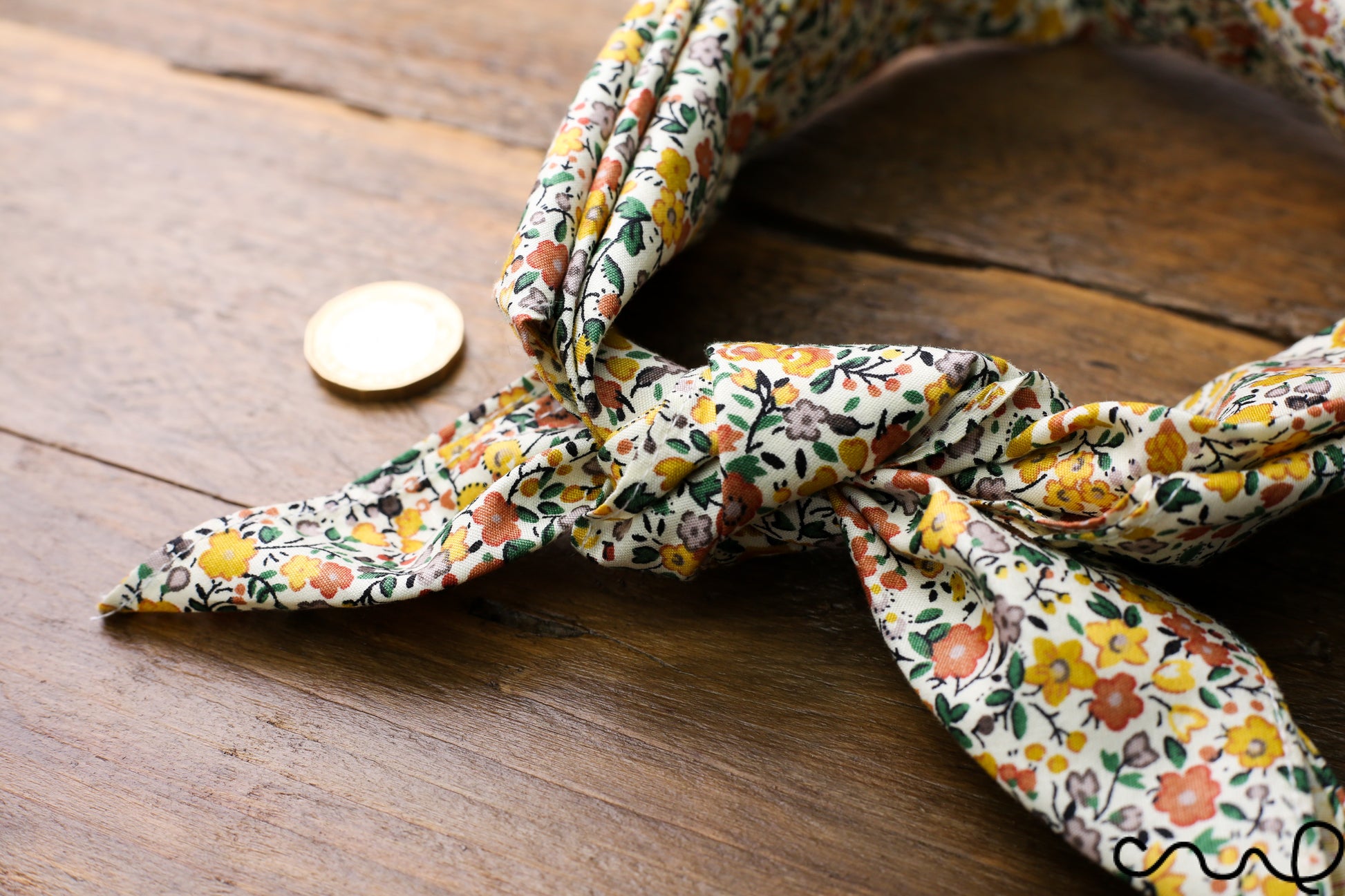 Handmade Cotton Yellow Ditsy Floral Bandana Vintage Chic Unique Headband Neck Scarf L