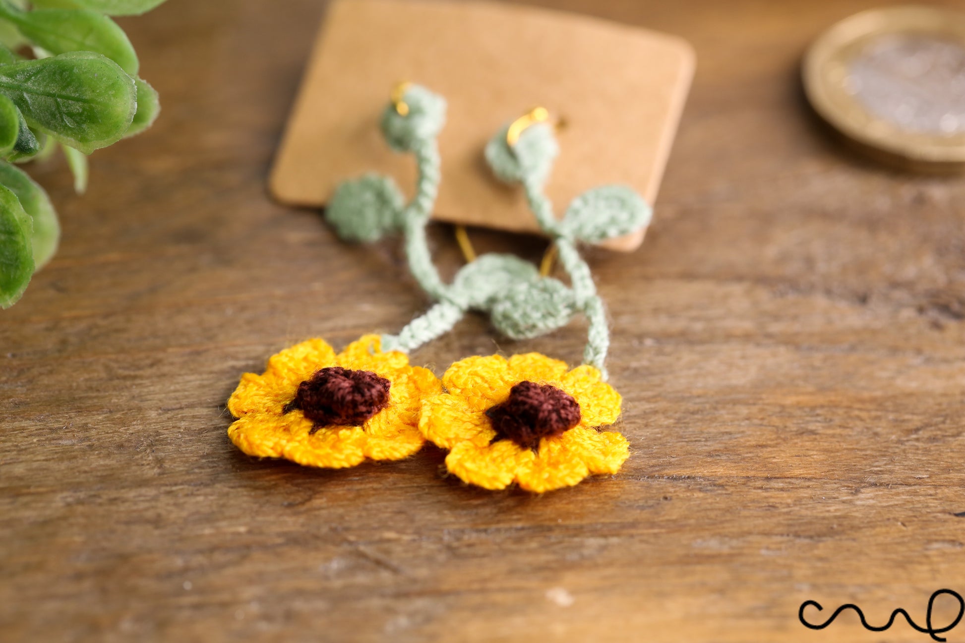 Hand Crocheted Sunflower Earring