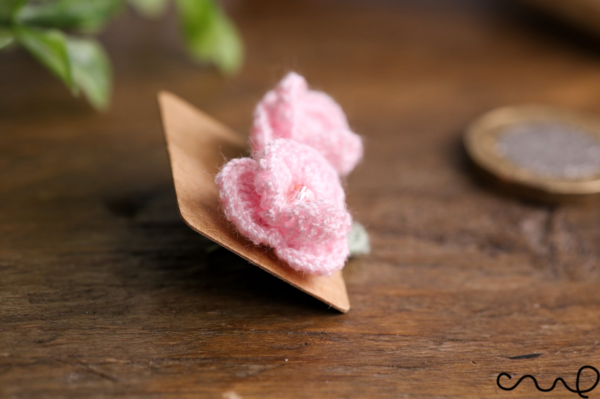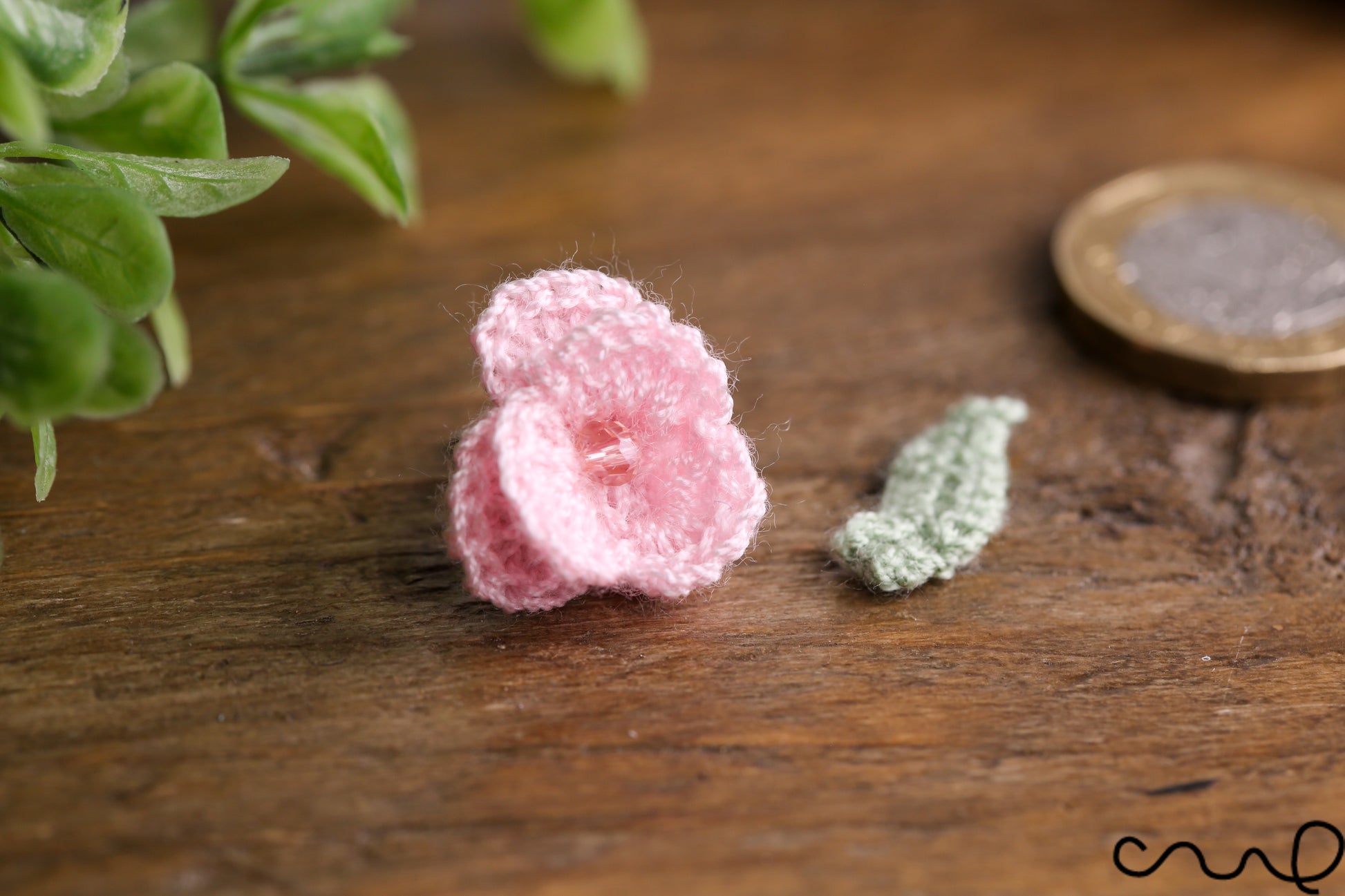 Hand Crocheted Pink Rose Earring