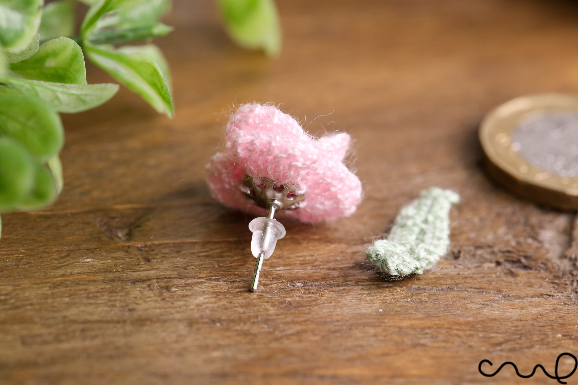 Handmade Flower Earrings Hand Crocheted Pink Rose Stud Earrings 2 in 1 Style
