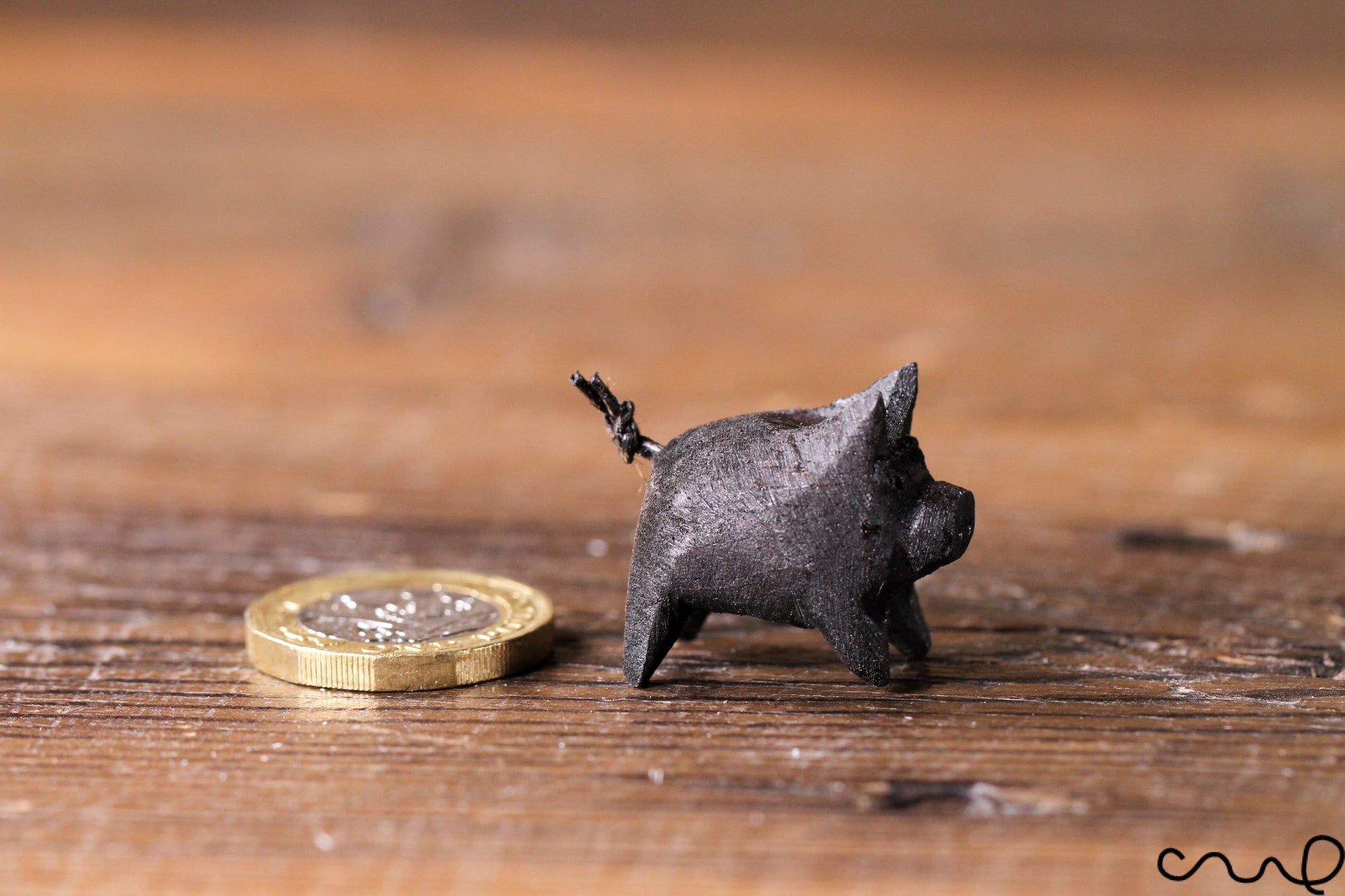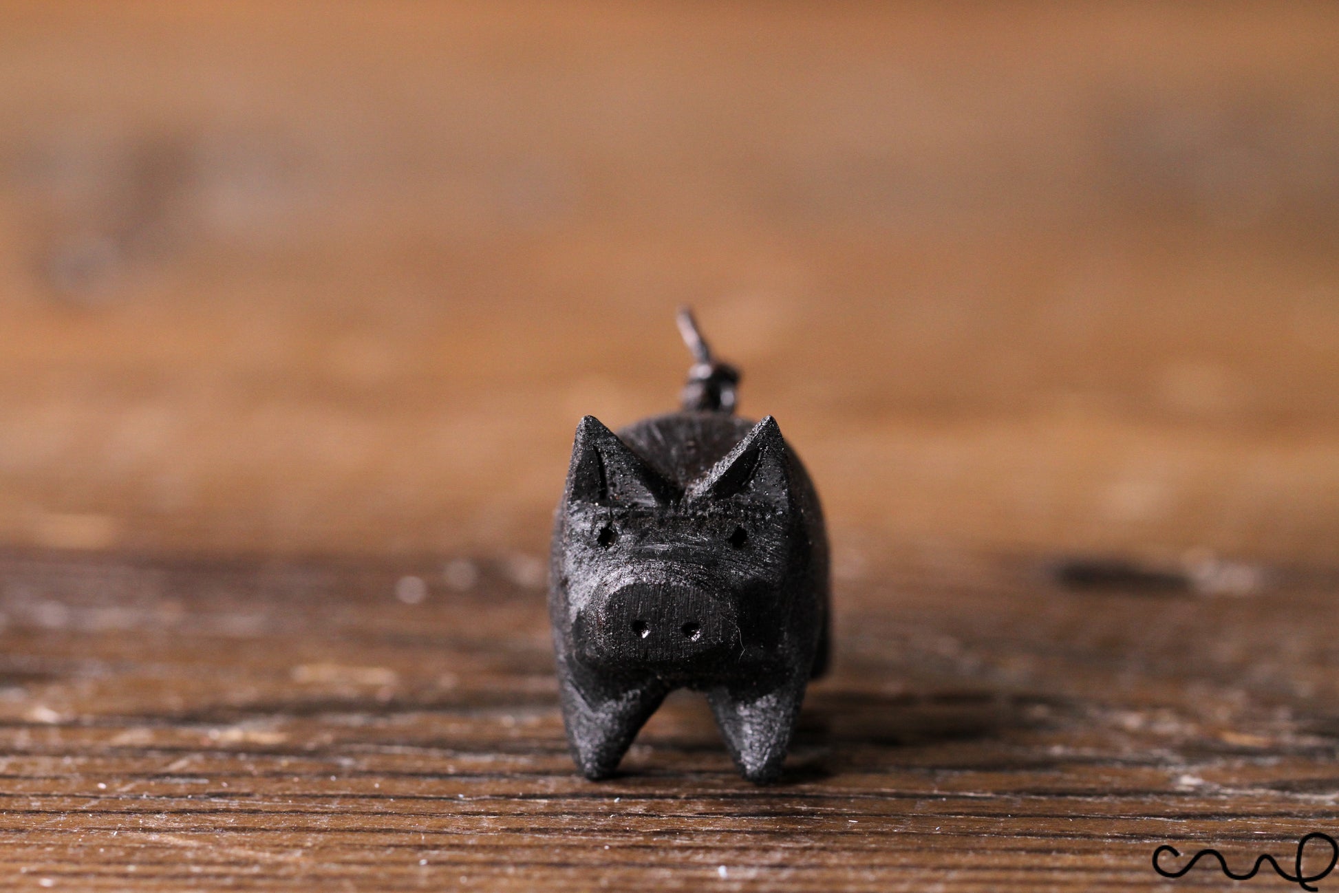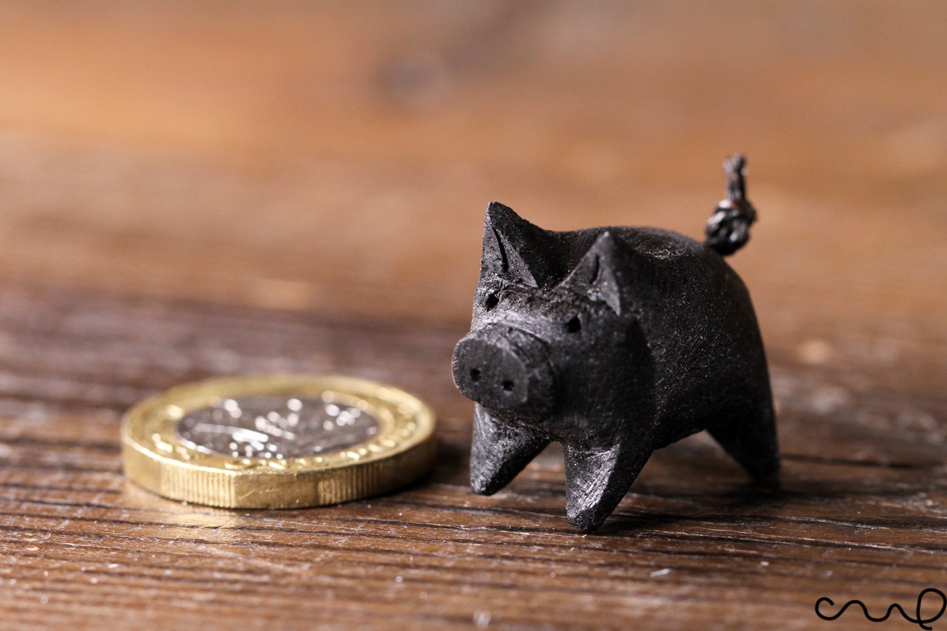 Handmade Hand Carved Black Little Wooden Pig Animal Crafts Home Decor Farm Gift Piglet
