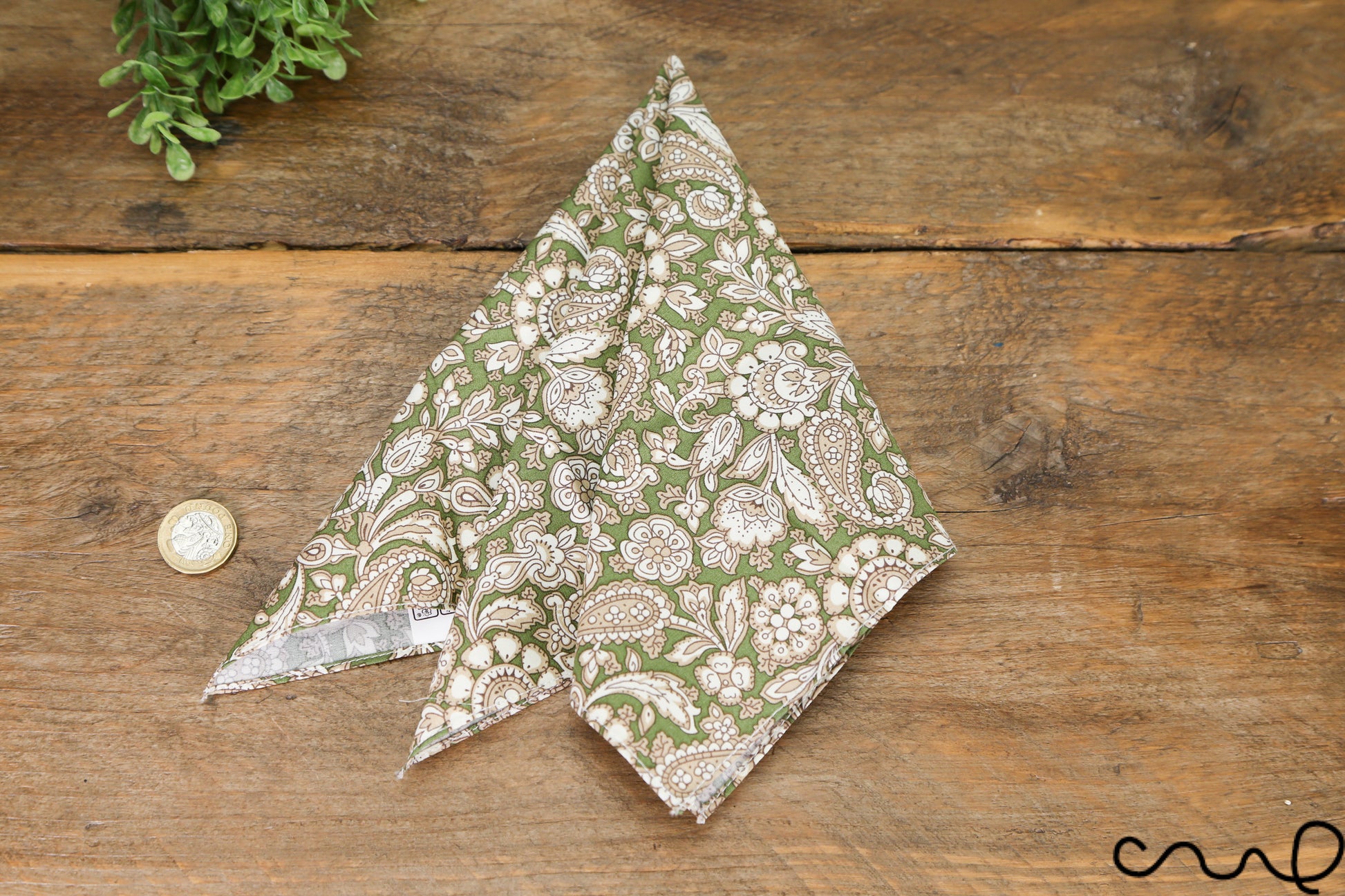 Handmade Mens Cotton Pocket Square Handkerchief Paisley Khaki Wedding Gift AAA