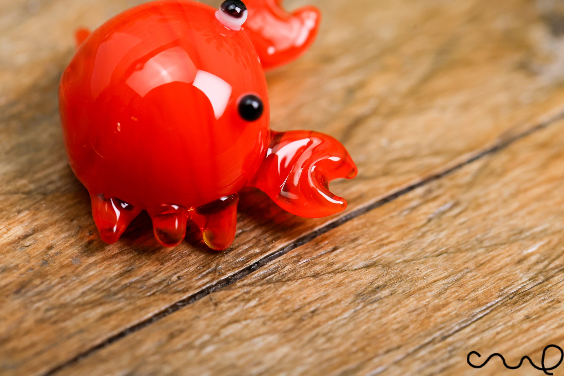 Handmade clear orange glass crab