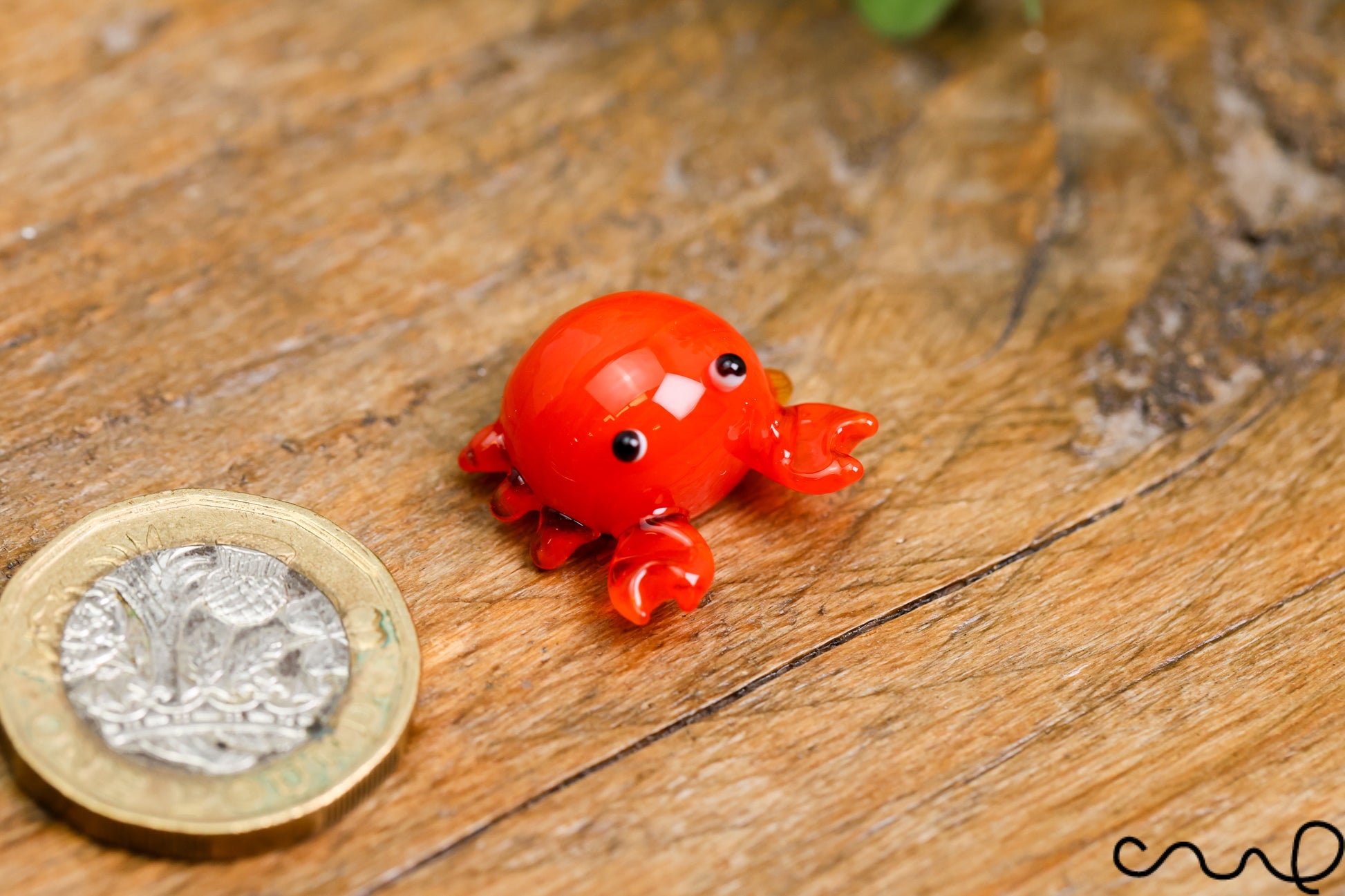This miniature glass crab figurine adds a charming coastal touch to any collection or craft project. Expertly handmade in a clear orange glass finish, the crab features detailed claws, legs, and expressive eyes. With its compact size, it’s ideal for shelf decoration, sea-themed crafts, or as a thoughtful addition to a marine life miniature set.