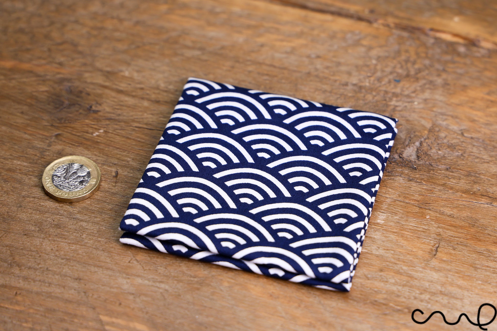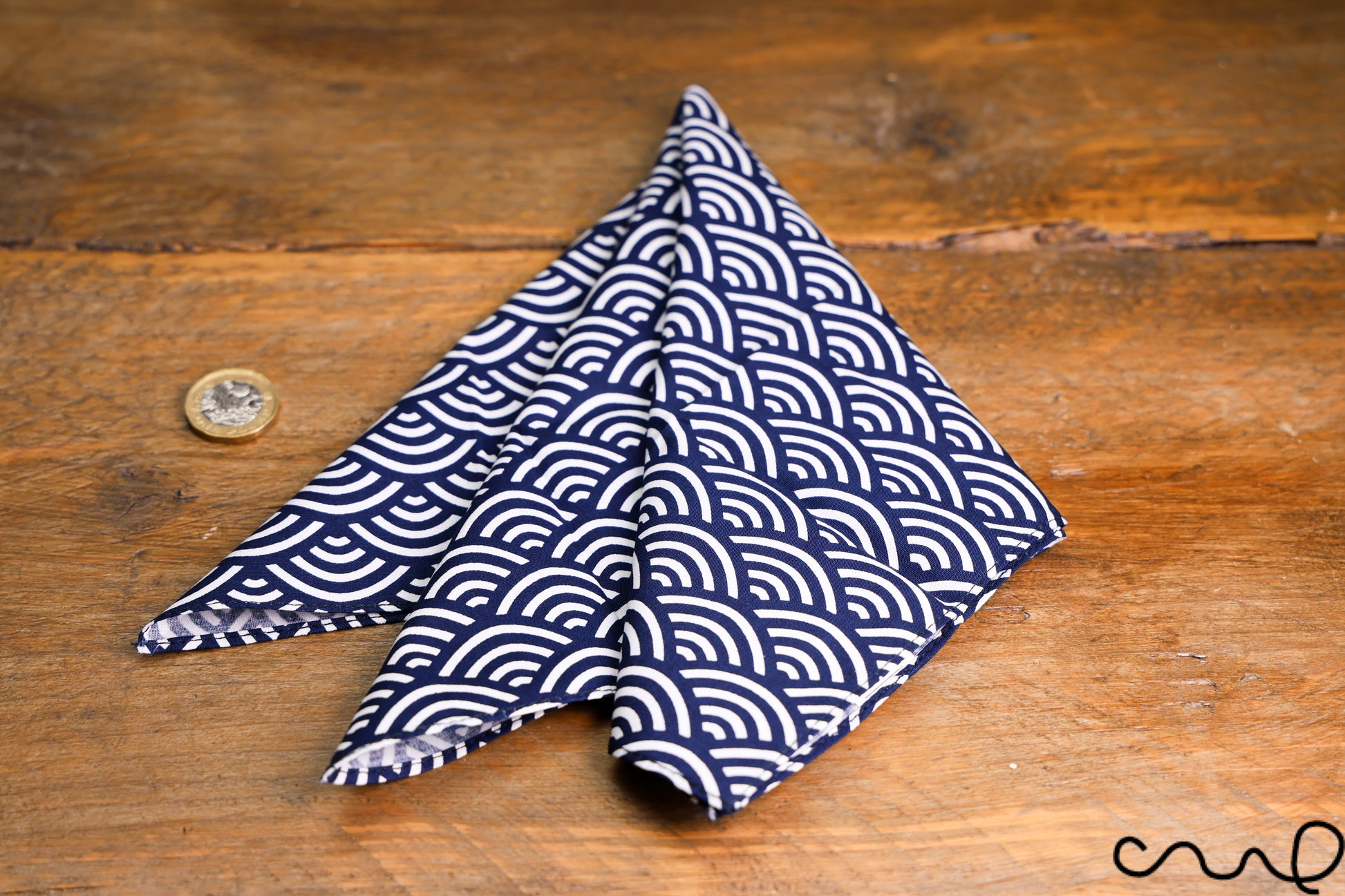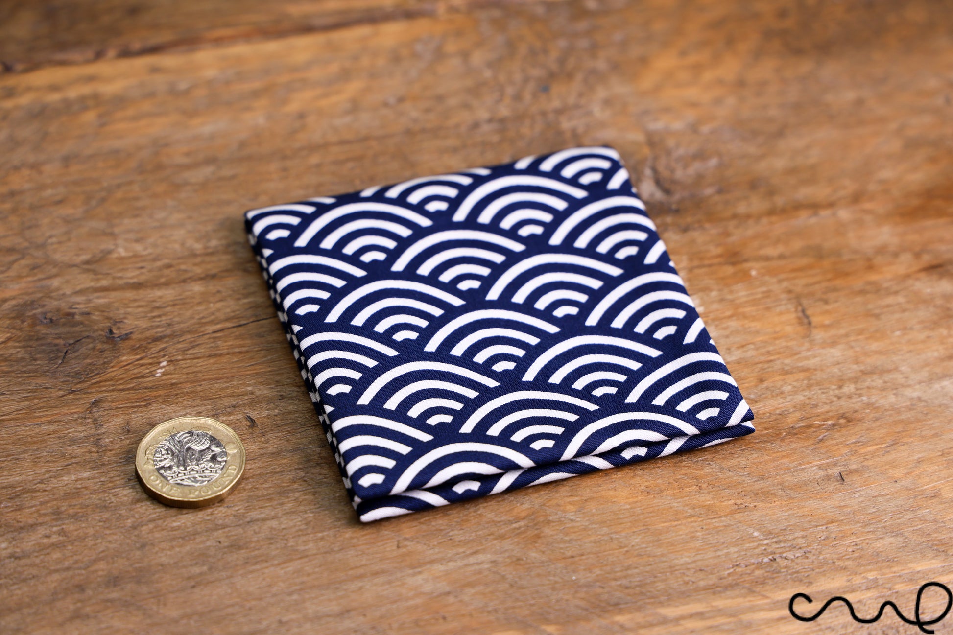 Handmade Navy & White Cotton Pocket Square Handkerchief Japanese Geometric AAD