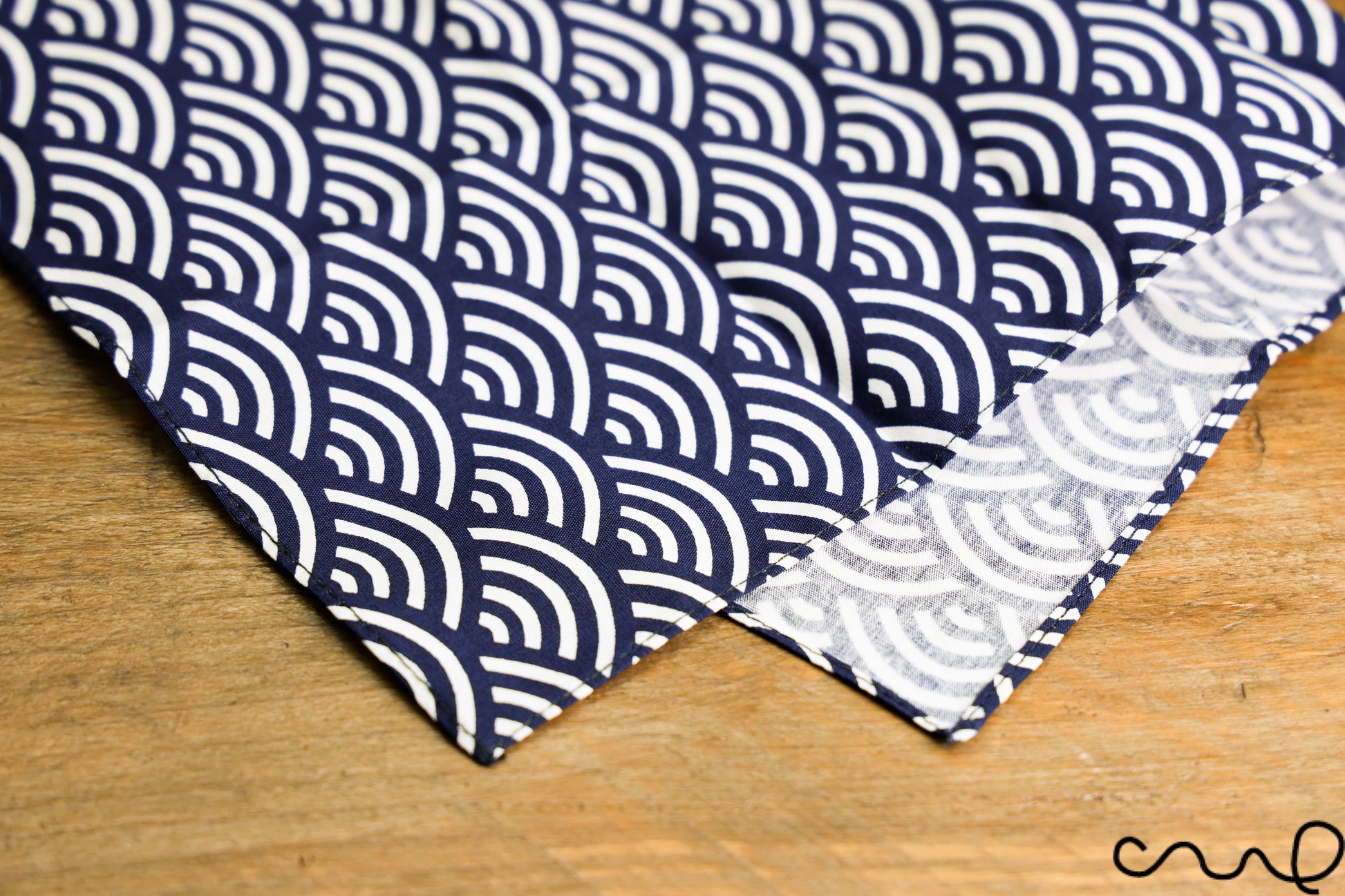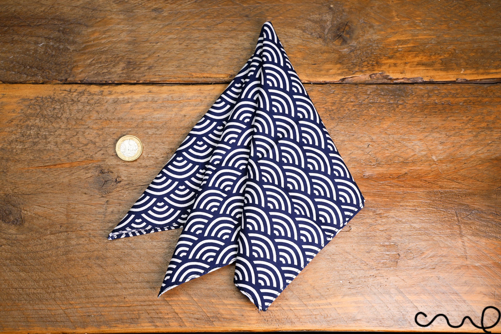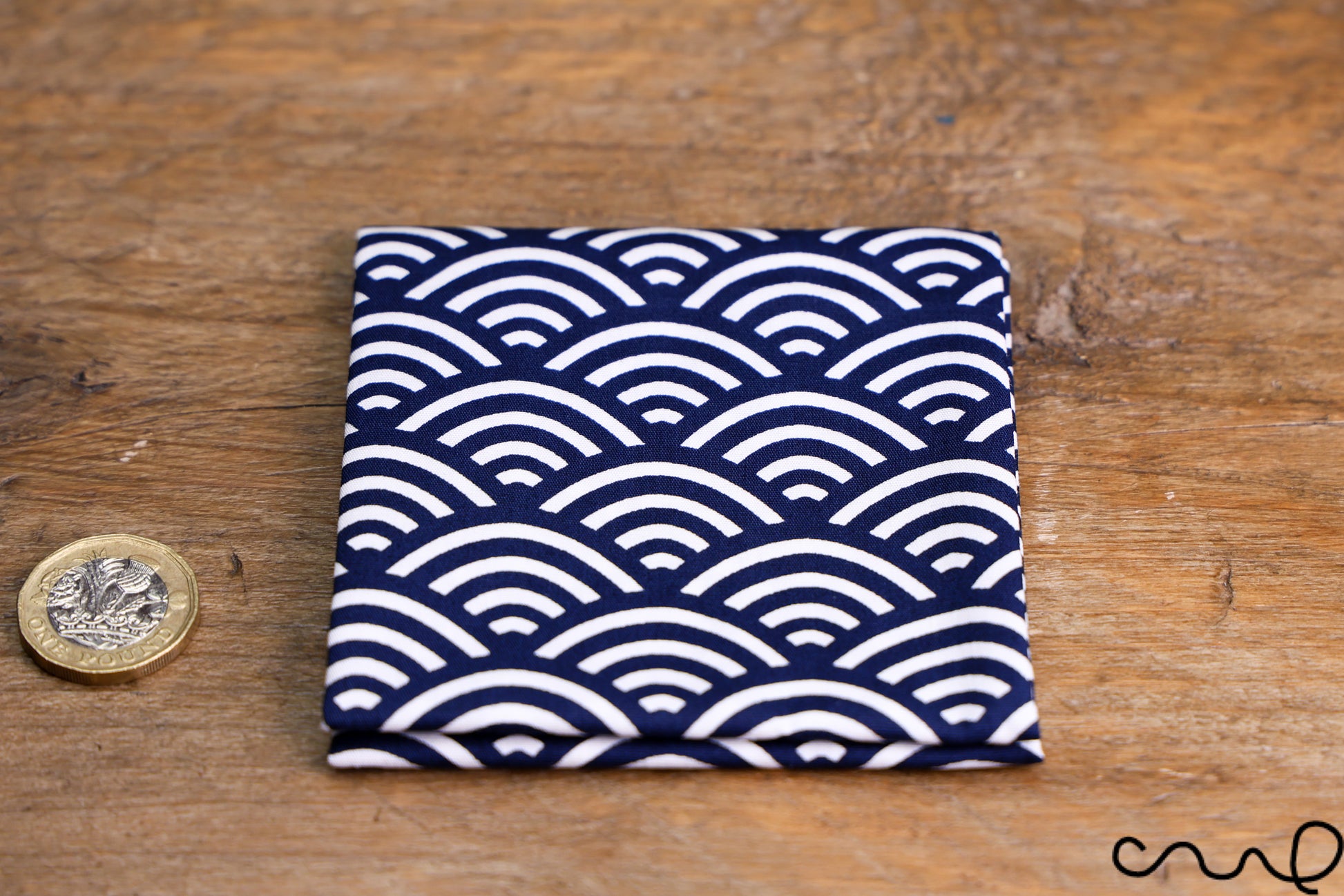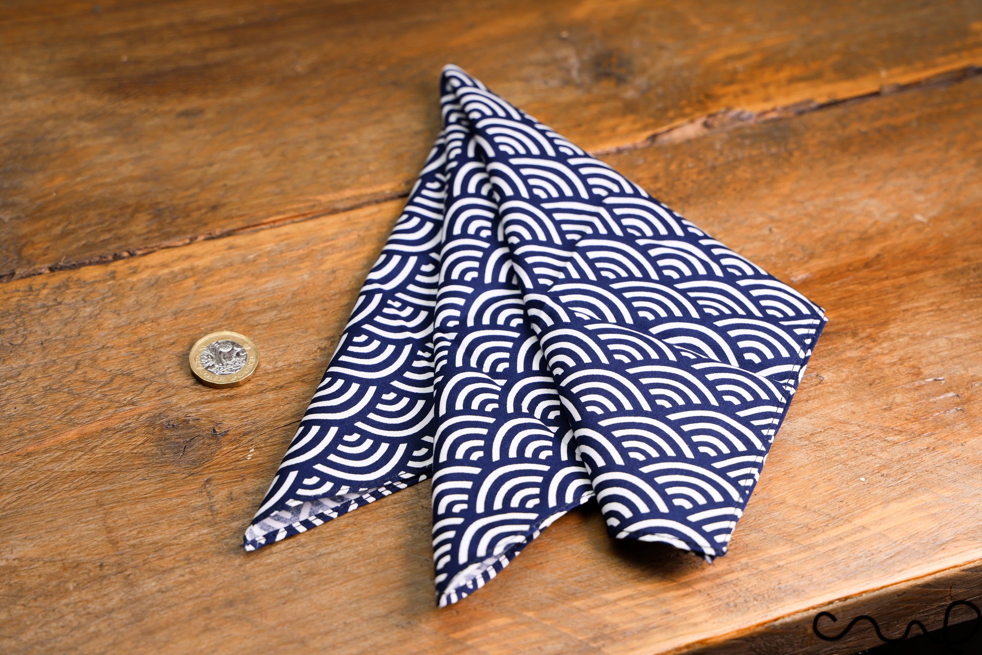Handmade Navy & White Cotton Pocket Square Handkerchief Japanese Geometric AAD