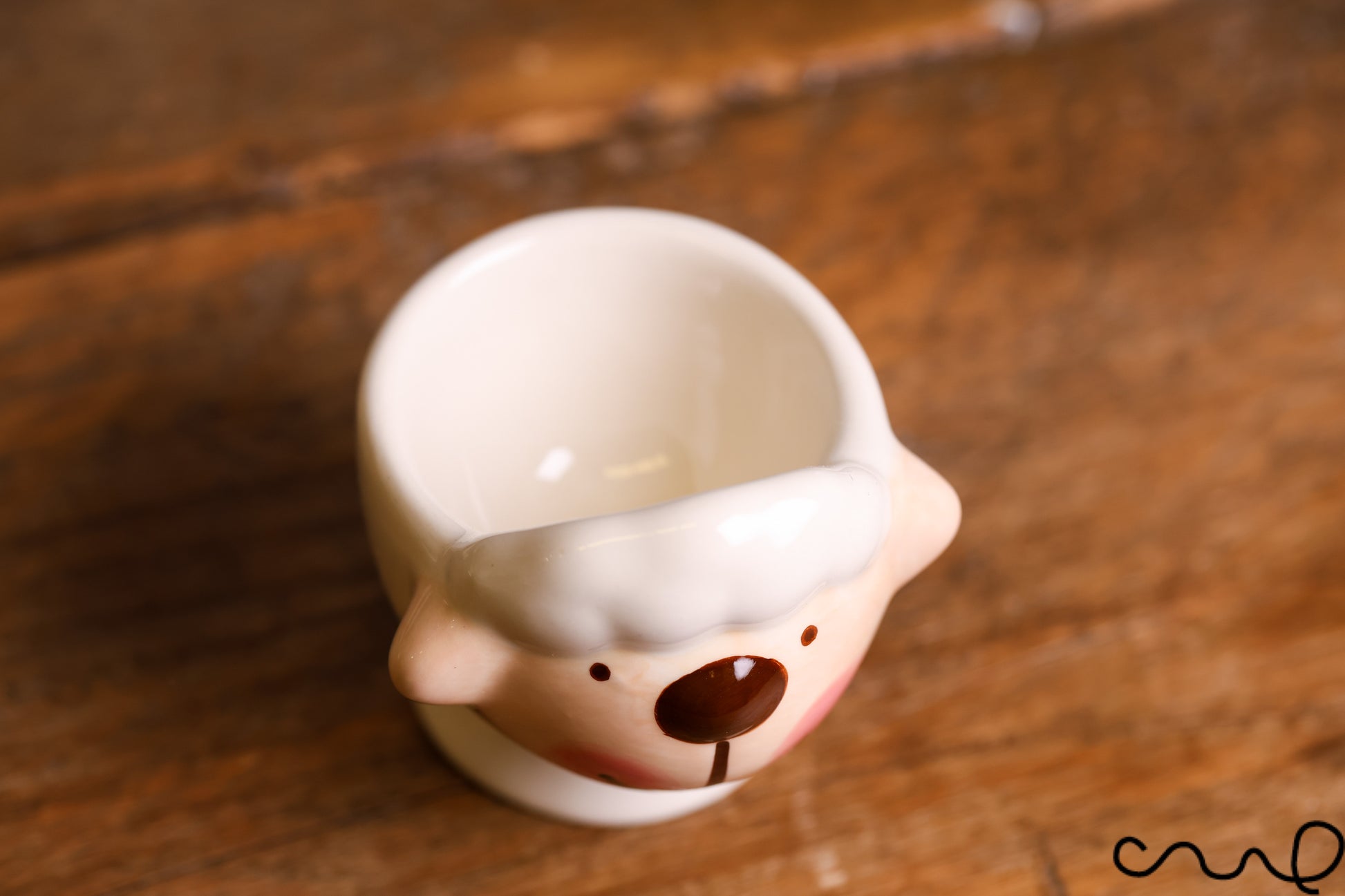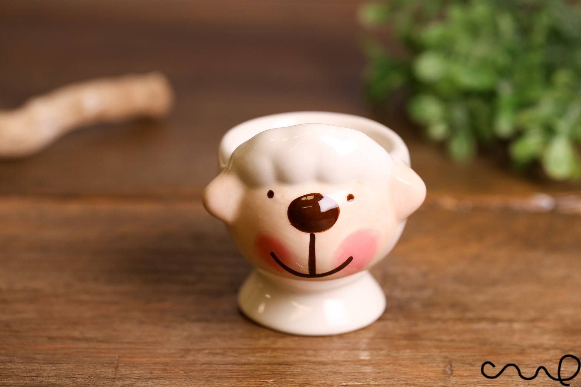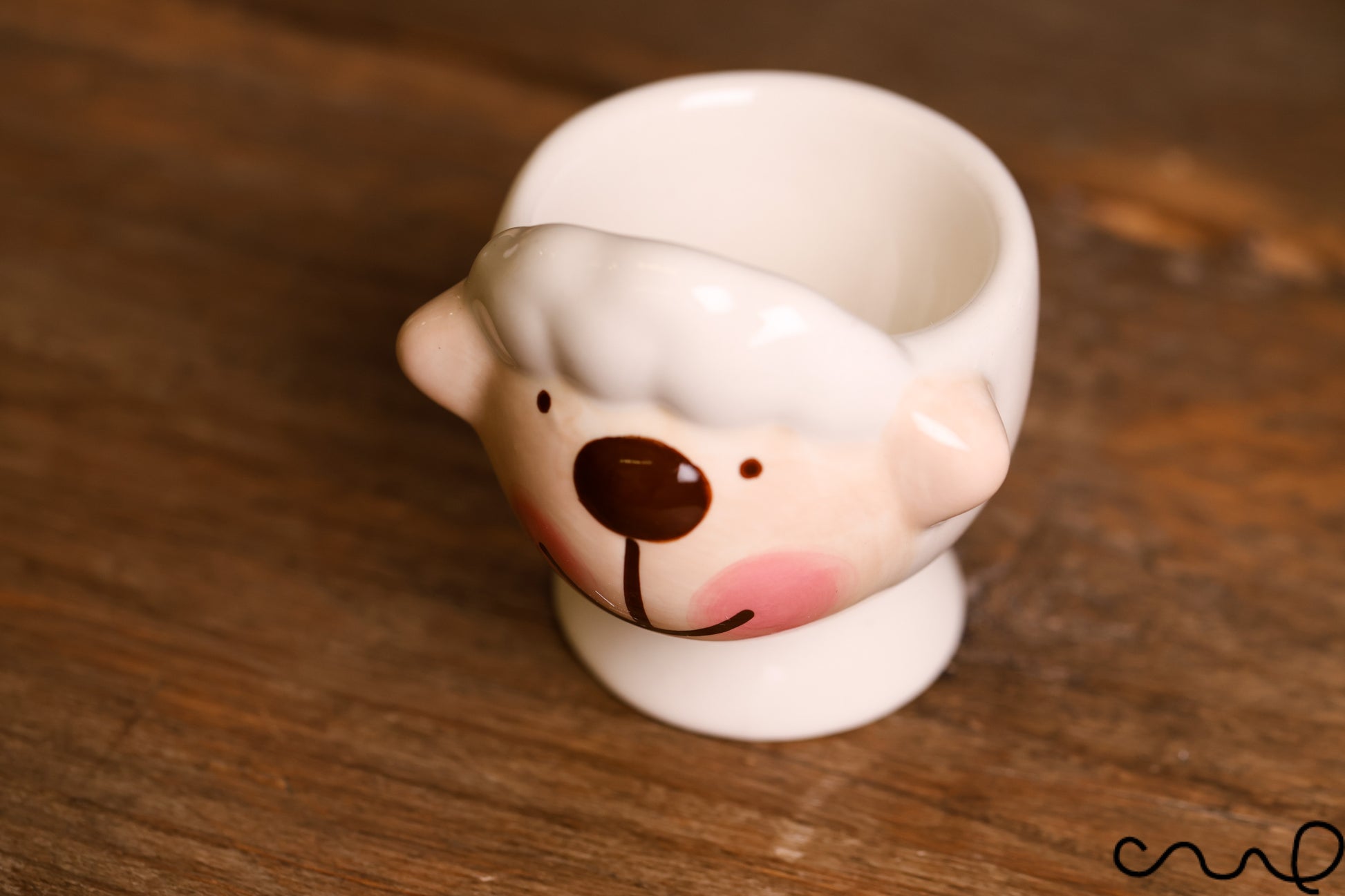 Handmade Sheep Egg Cups Ceramic Hand Painted Brown Nose White Breakfast Serving