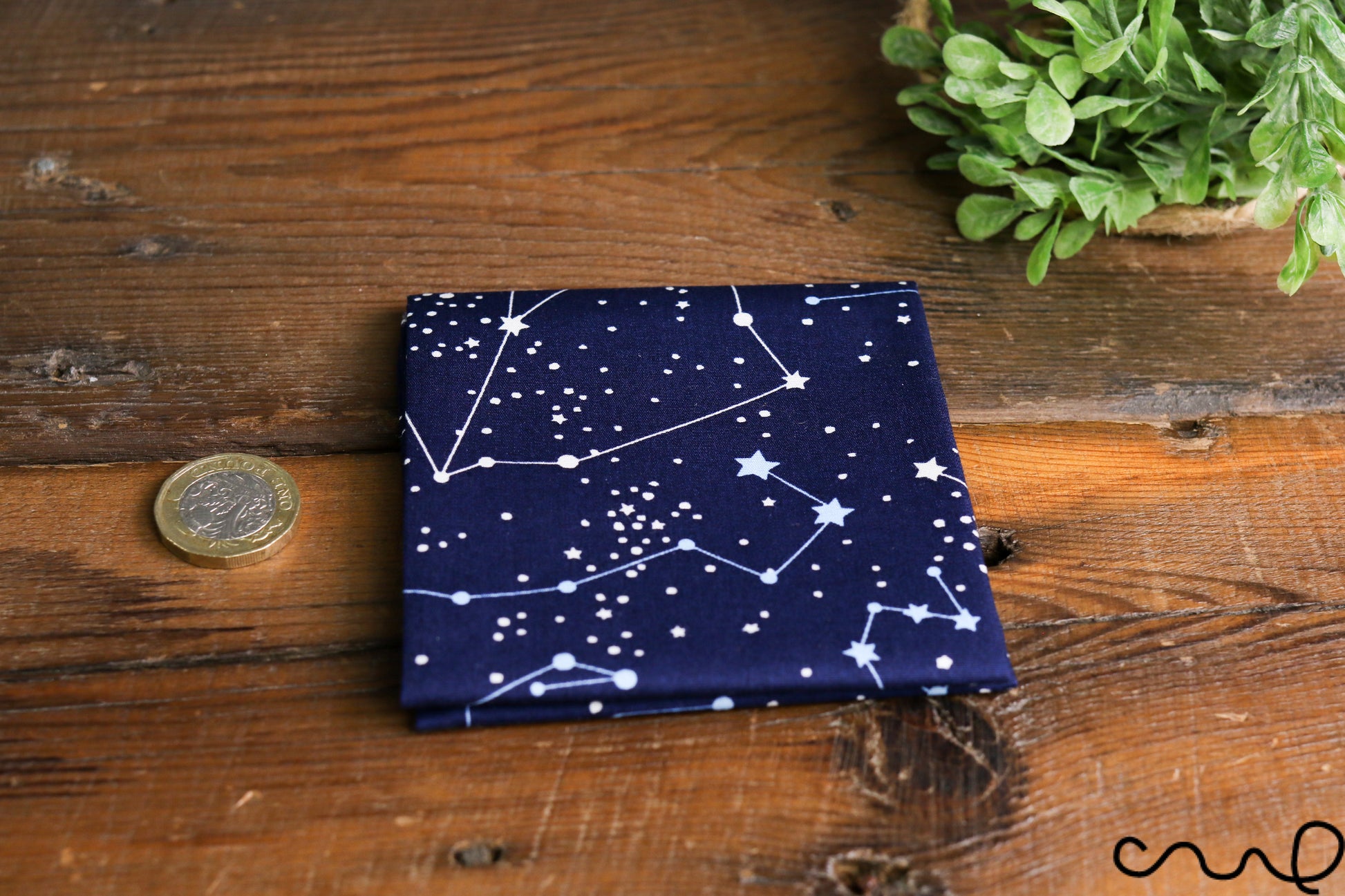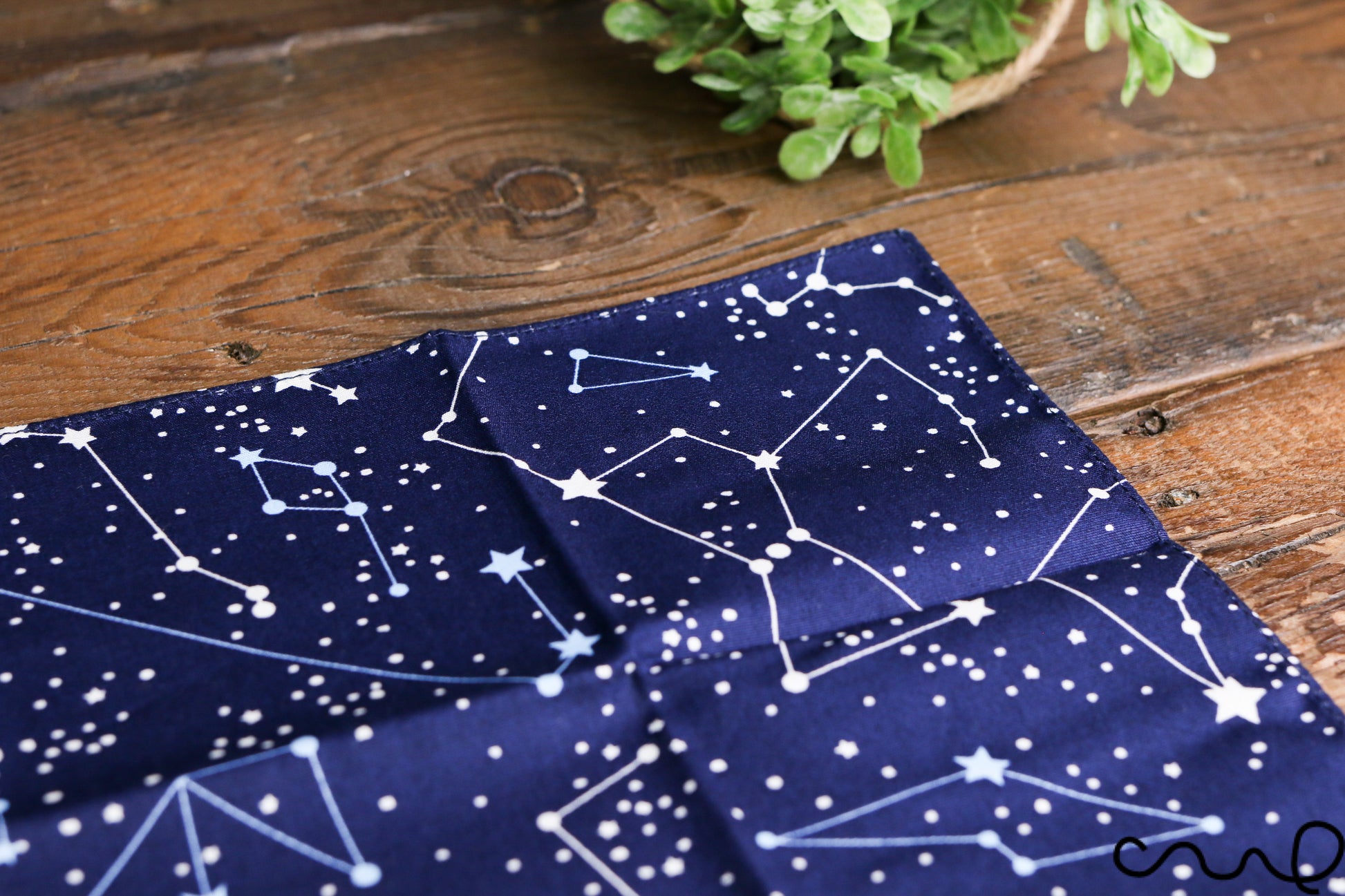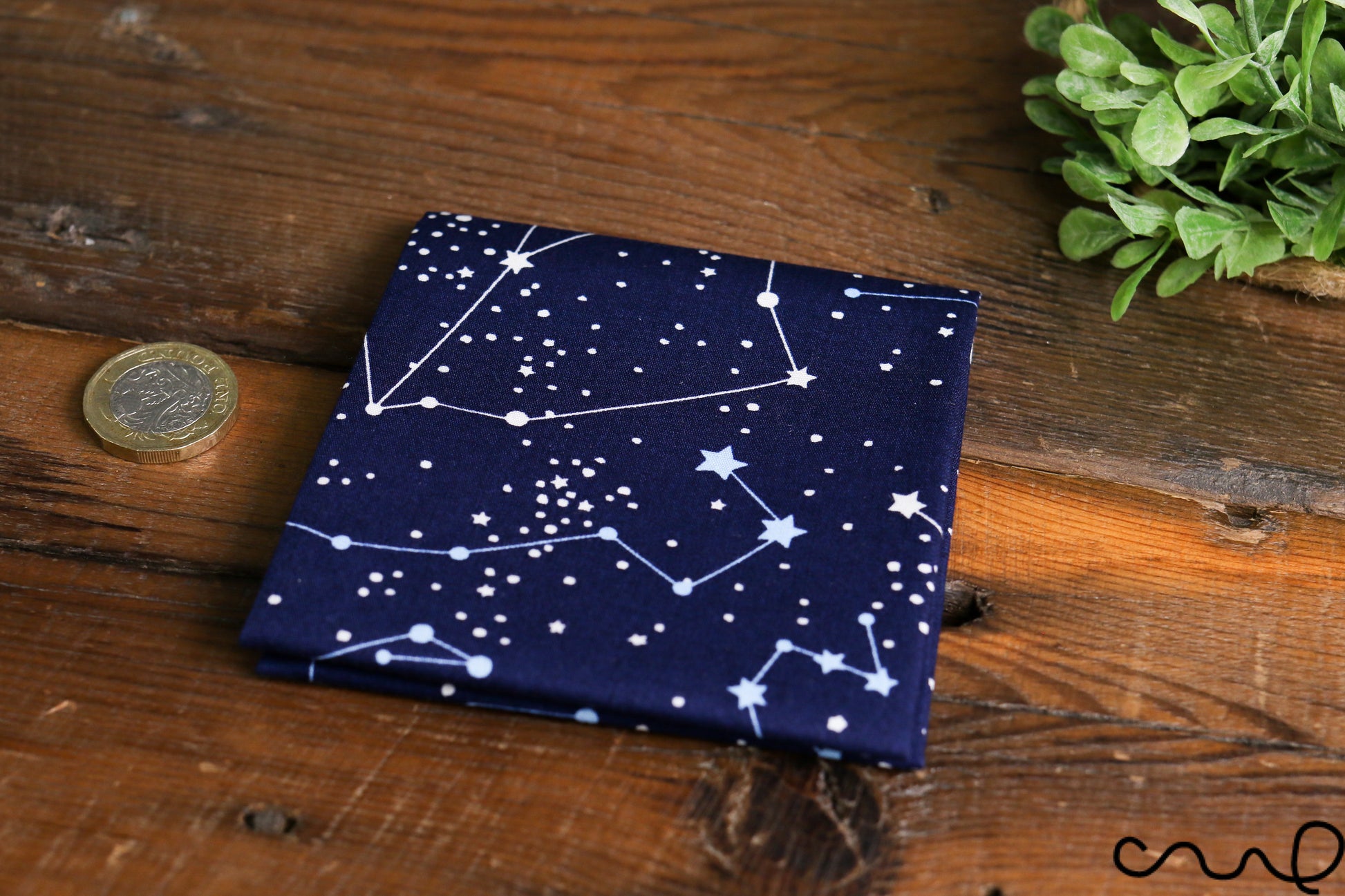 Handmade Unisex Pocket Square Cotton Handkerchief Navy Horoscope Star Wedding Z