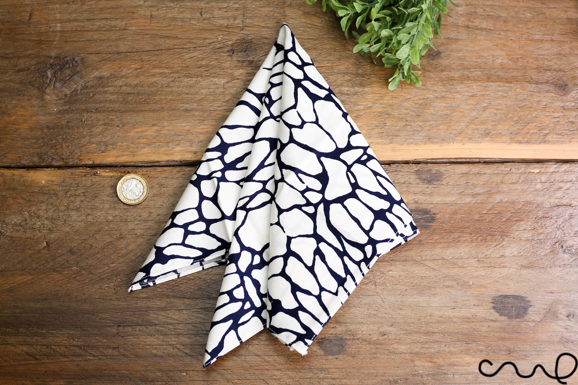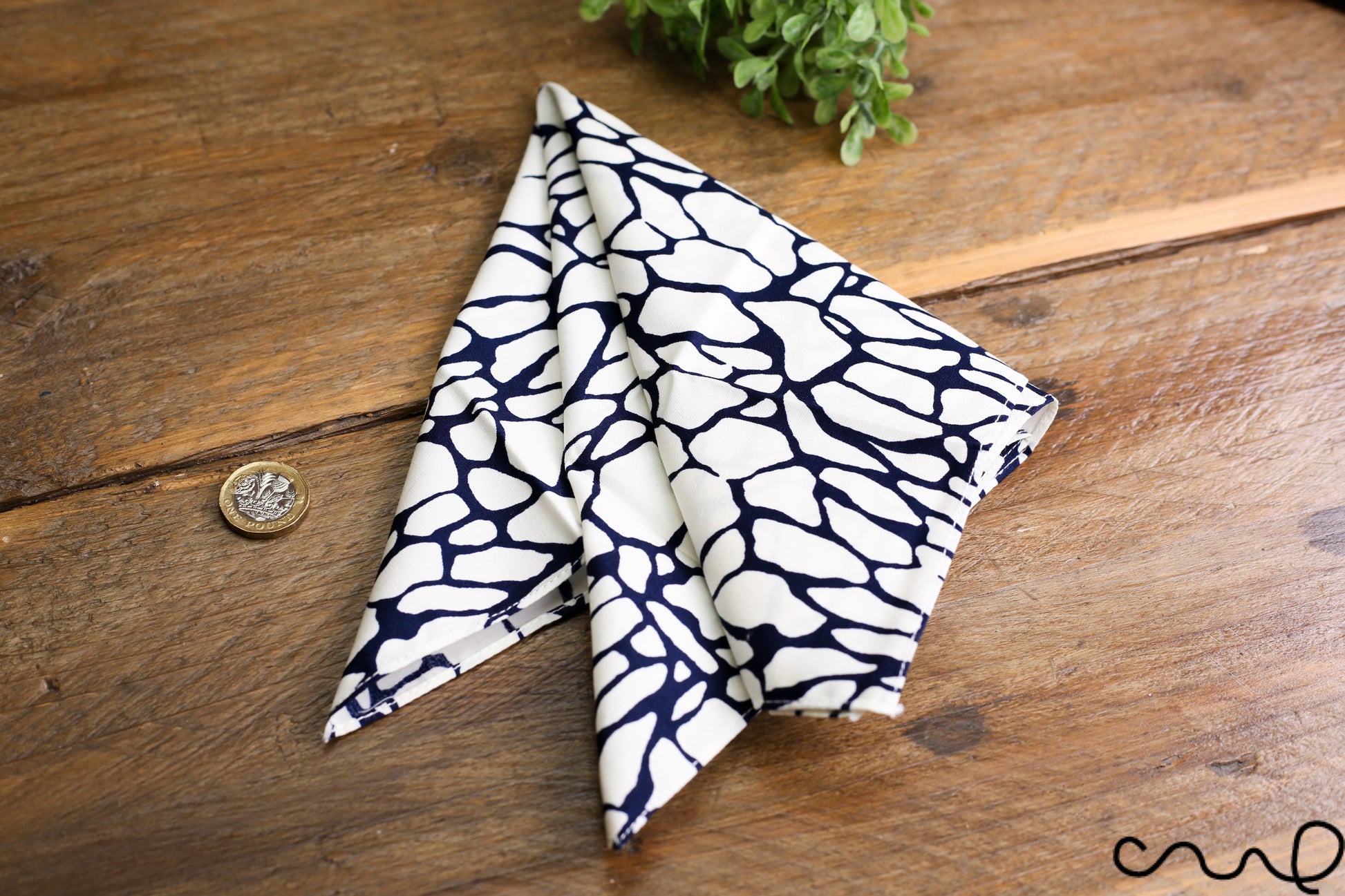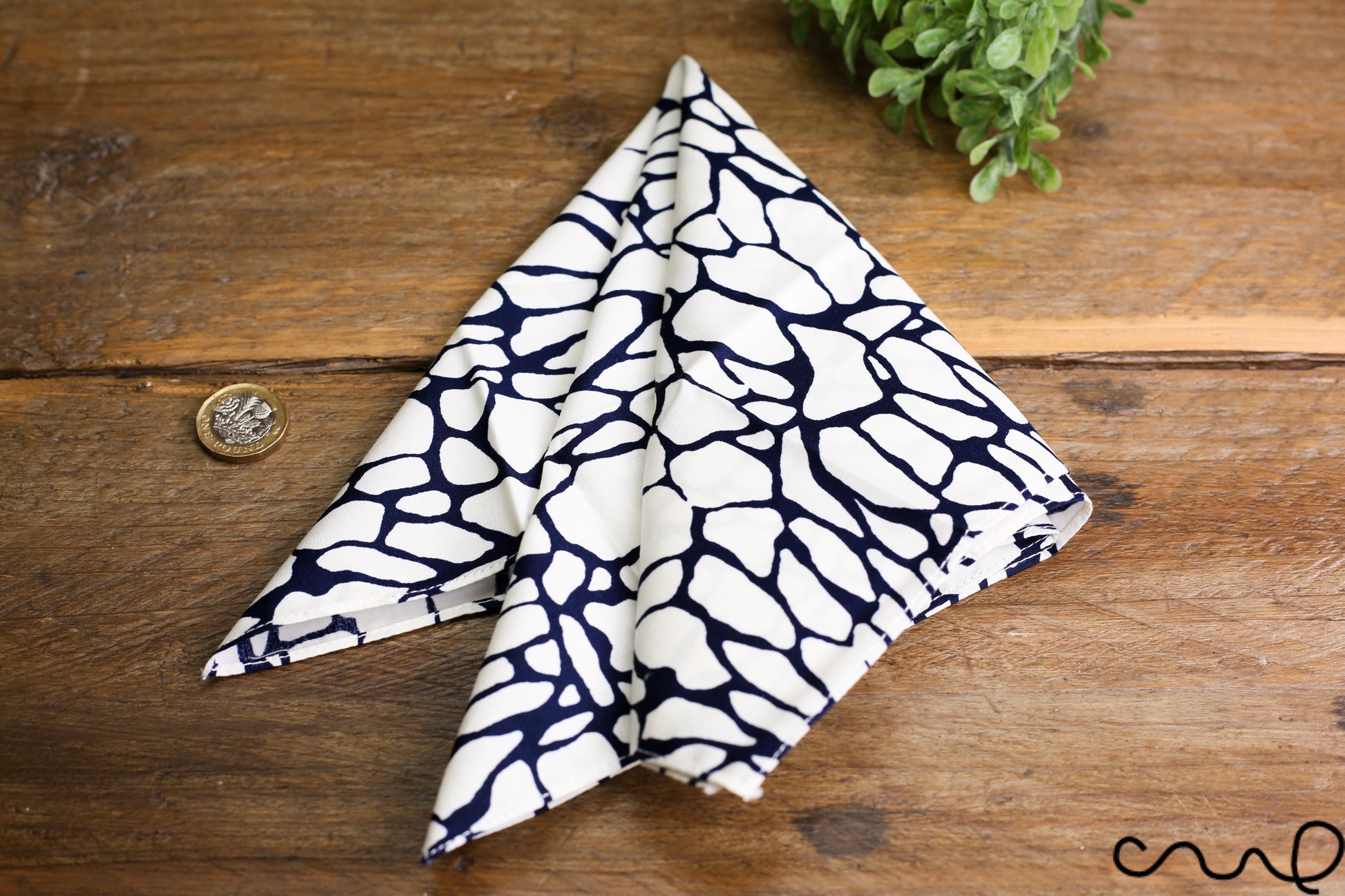 Handmade Unisex Pocket Square Cotton Handkerchief Navy White Geometric Line Pattern Wedding Gift AW