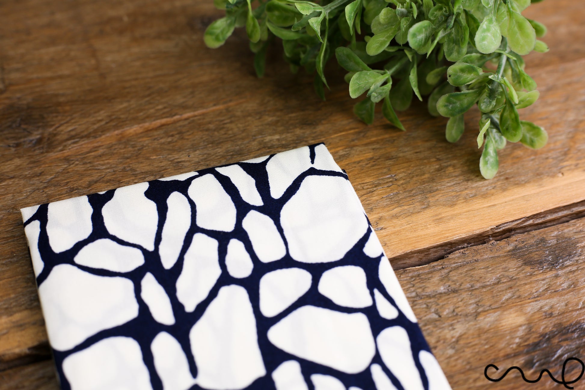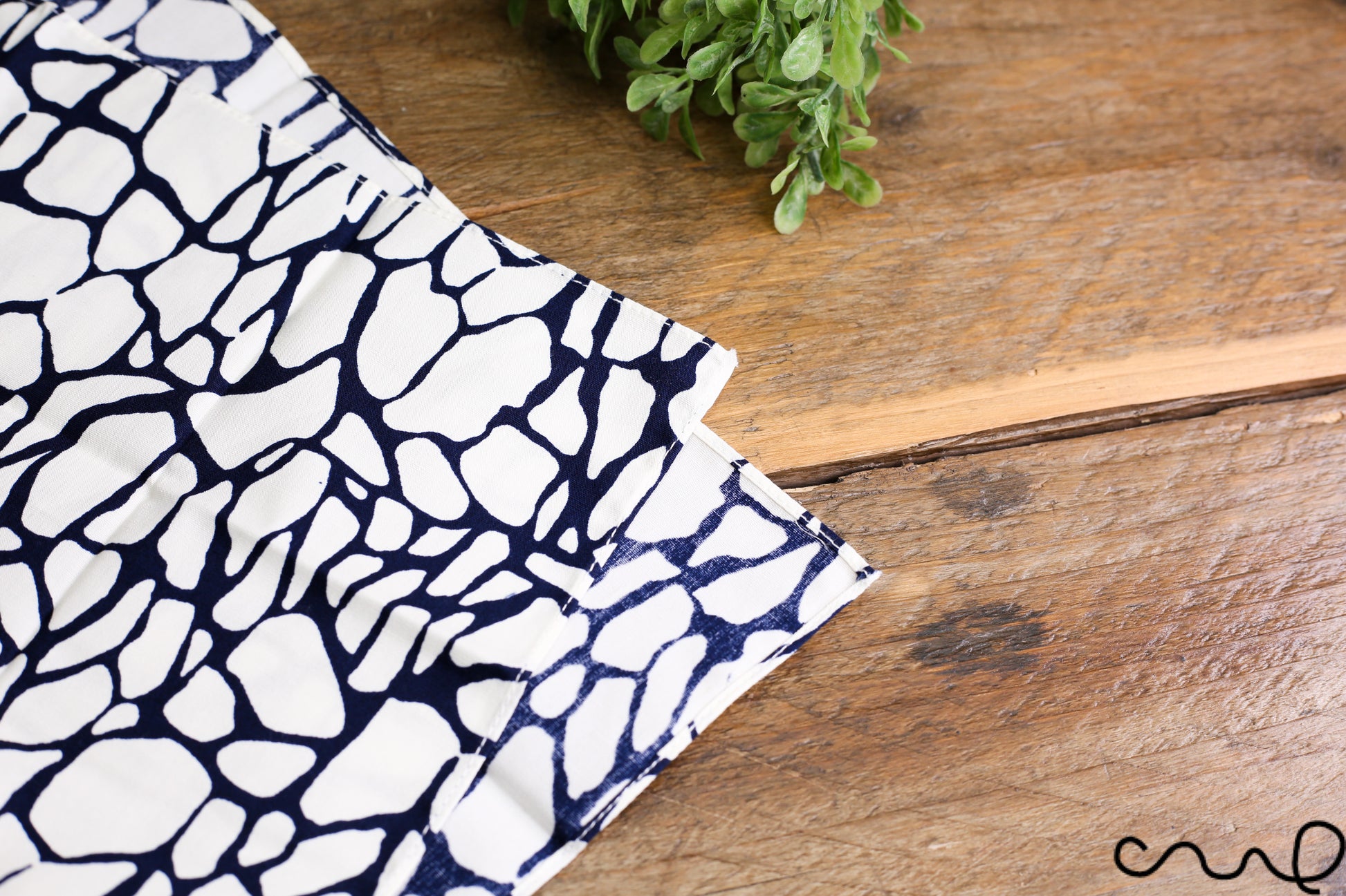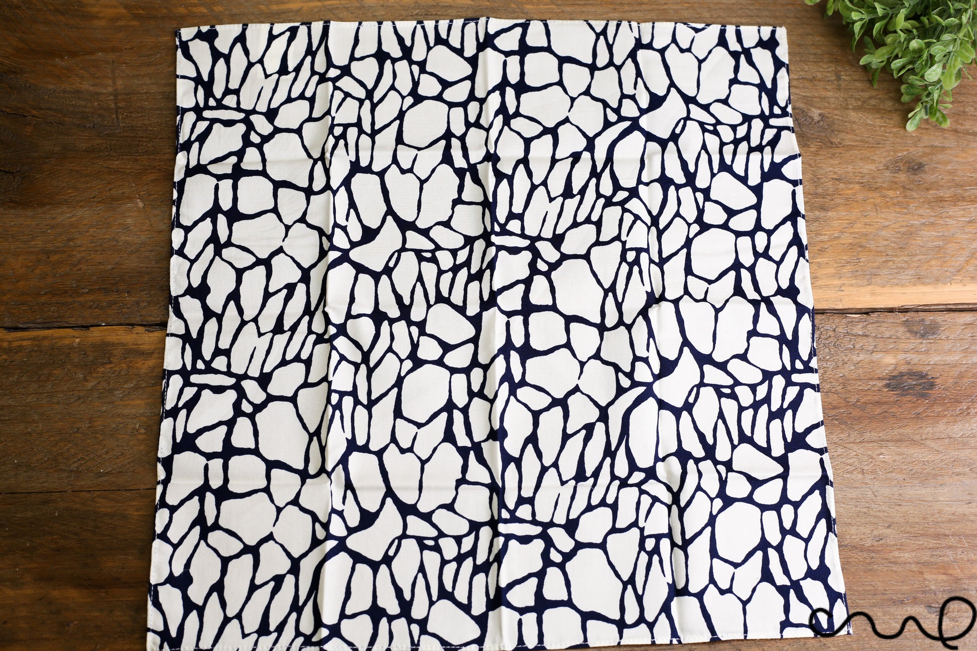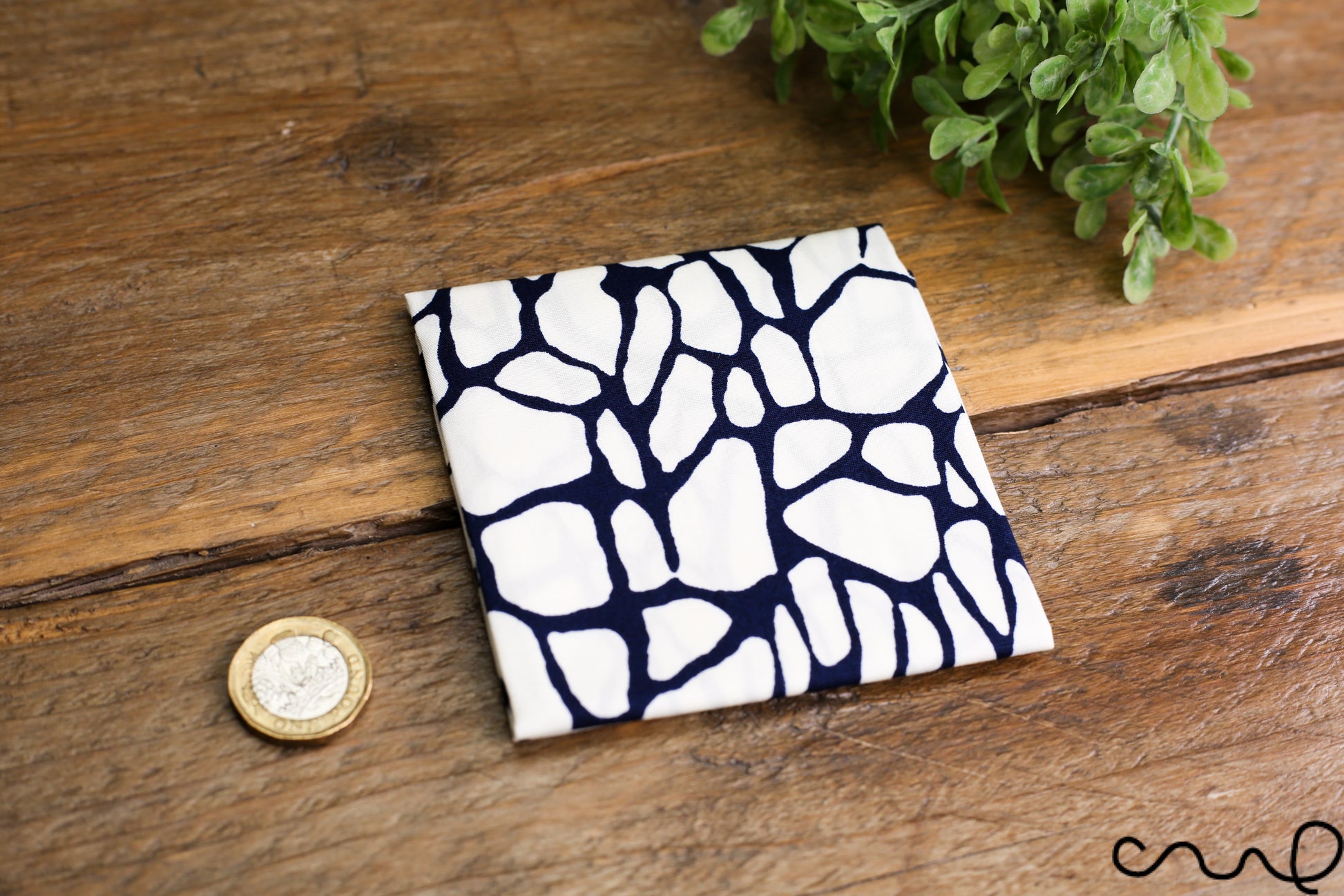 Handmade Unisex Pocket Square Cotton Handkerchief Navy White Geometric Line Pattern Wedding Gift AW