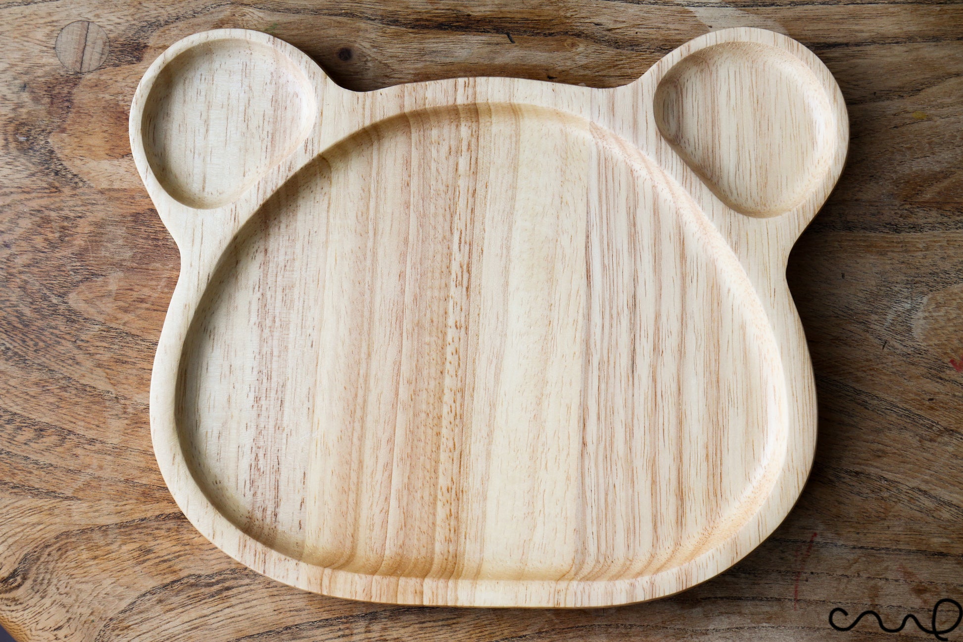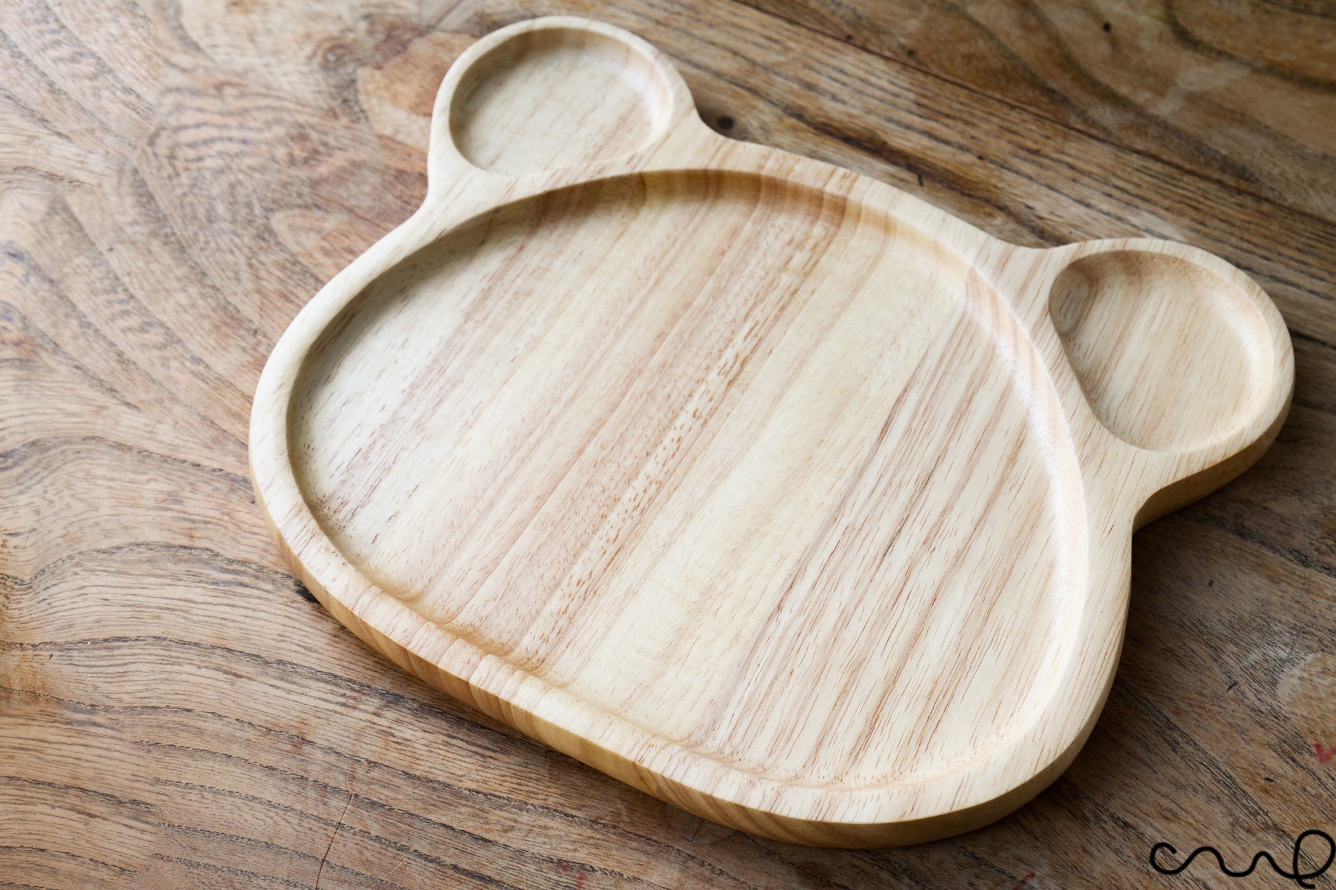 🐻 Handmade Wooden Bear Plate – Rubberwood Design