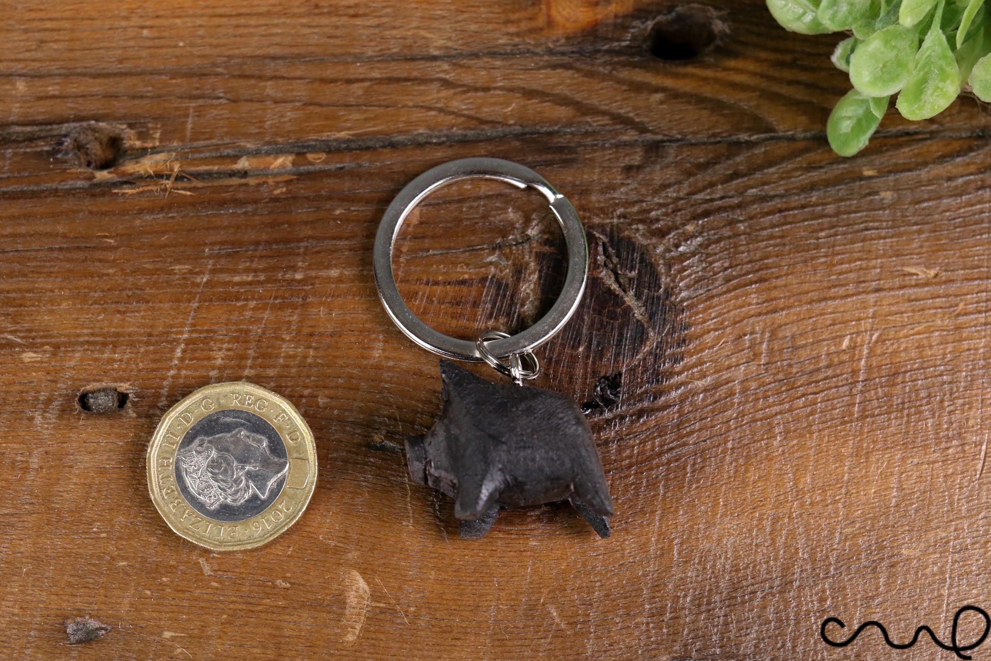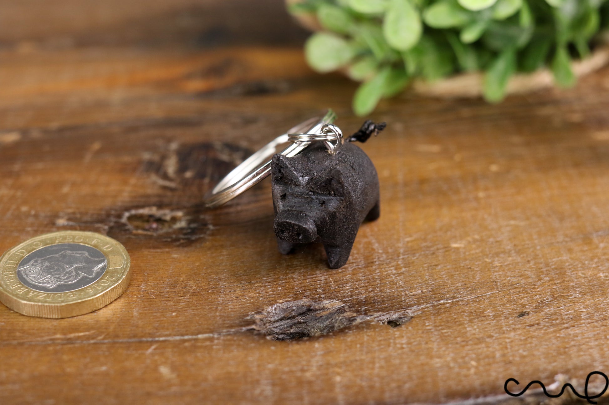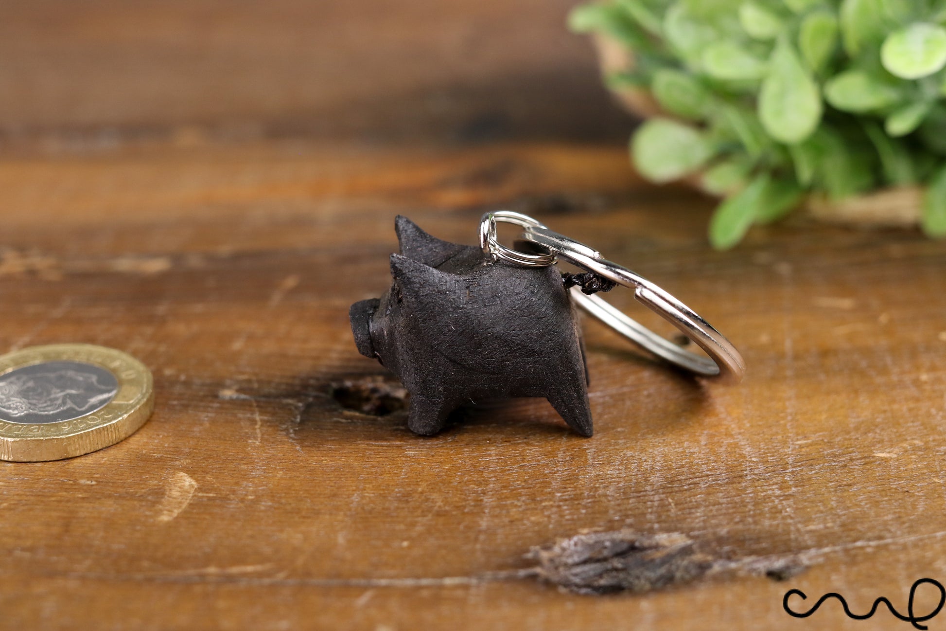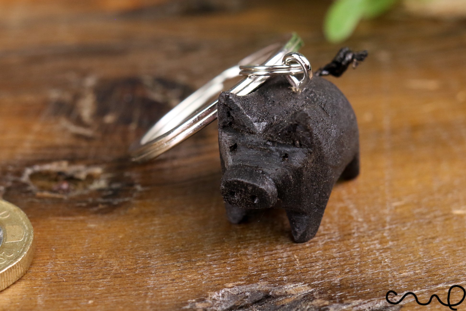 Handmade Wooden Little Black Pig Keyring Key Fob Unique Gift Animal Key Ring Piglet