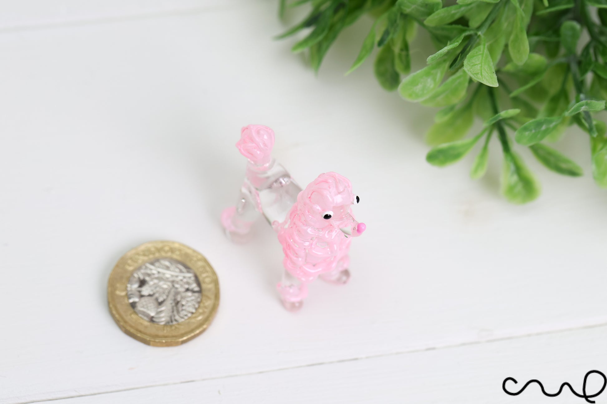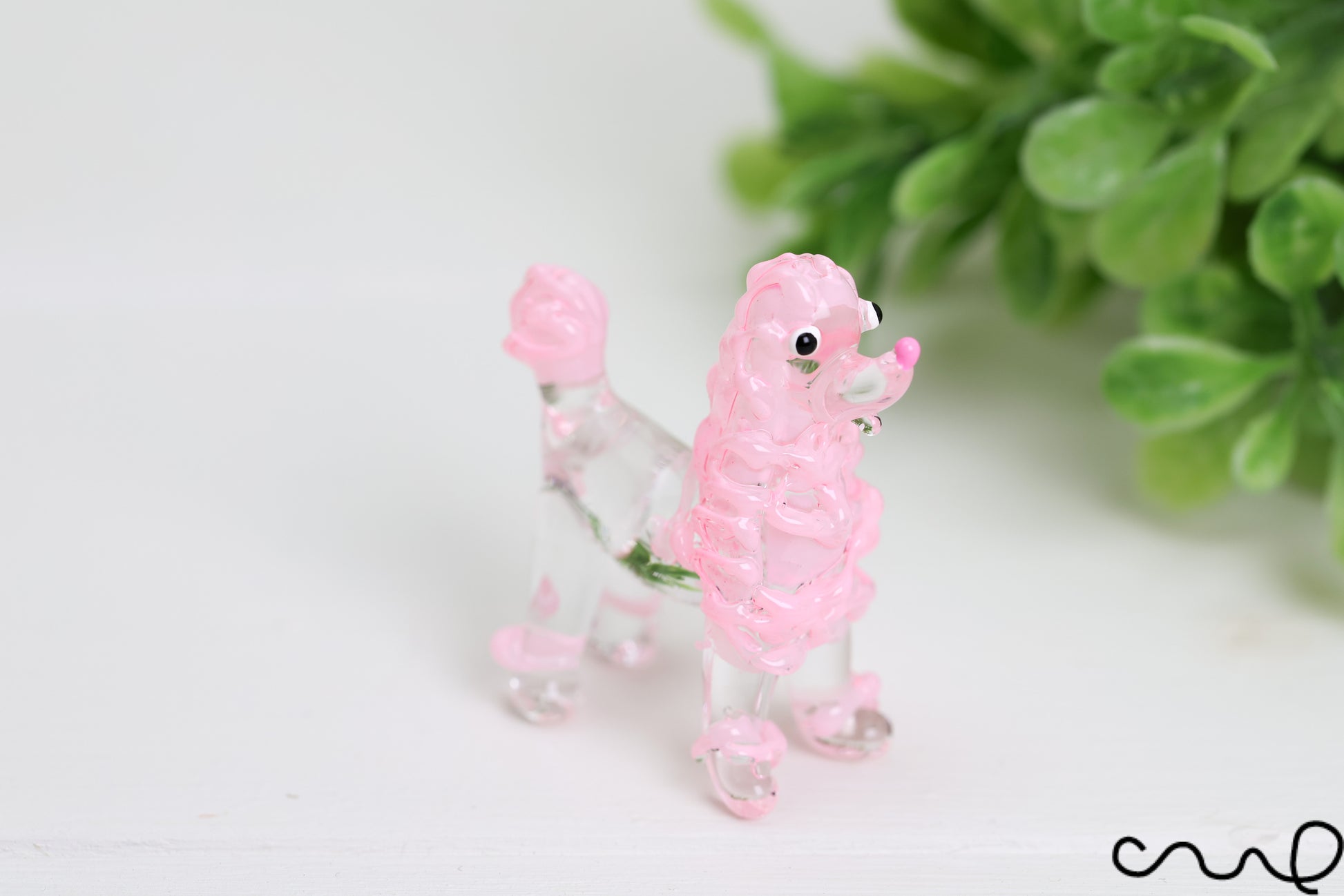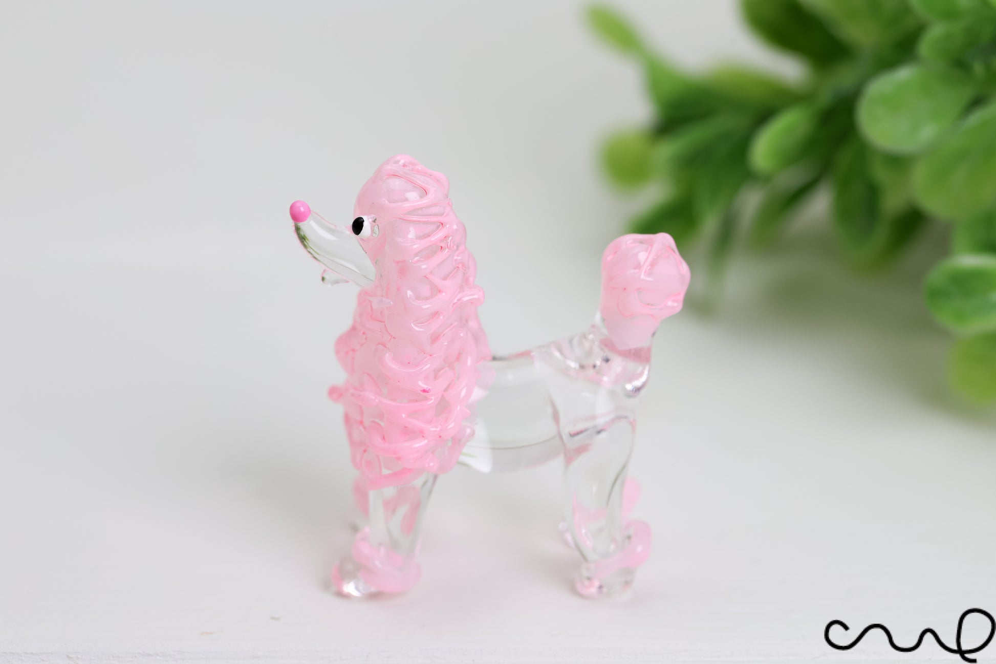 NEW Small Handmade Glass Dog Figurine Gloss Home Decor Ornament Pink Poodle Gift